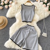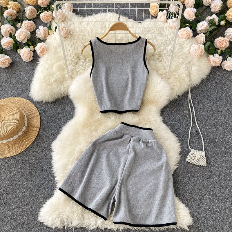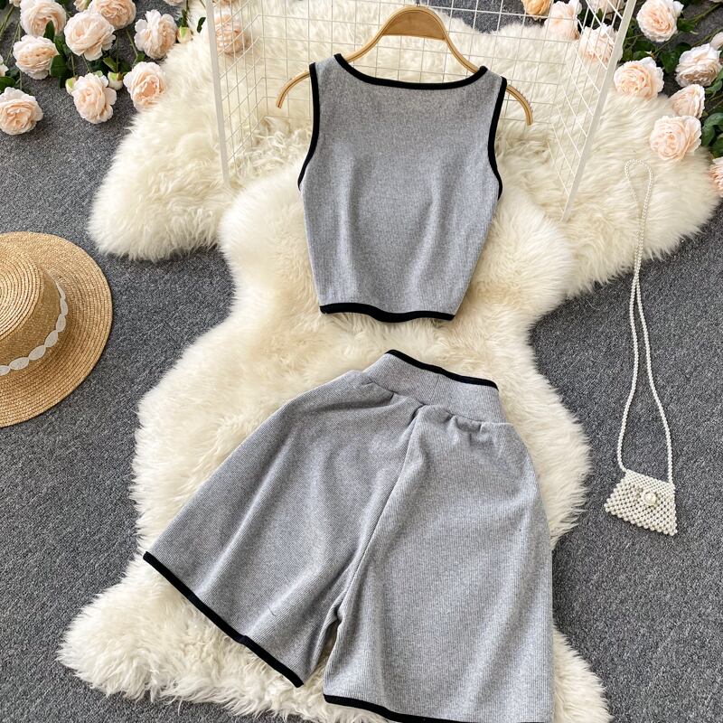2022年夏の新作ニッチヒットカラーノースリーブショートTシャツレディースハイウエストワイドレッグショーツホットガールスタイルツーピーススーツ ハイウェスト サマー 夏物 ブルマー ワイドパンツ lyxaj73008177462