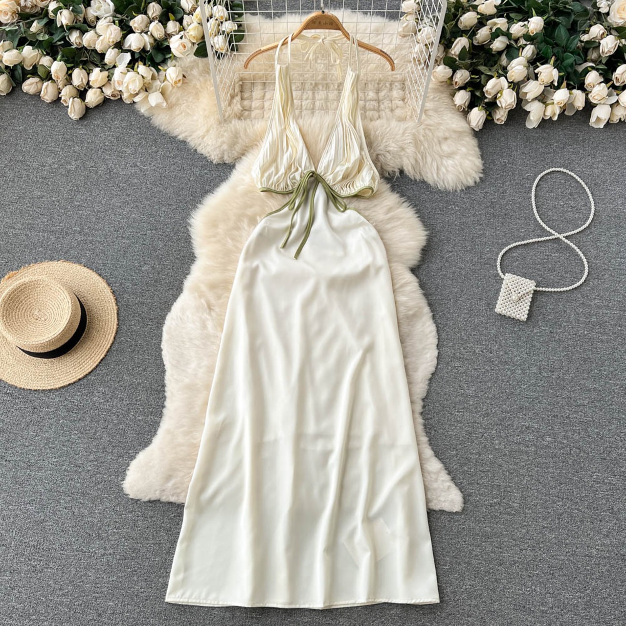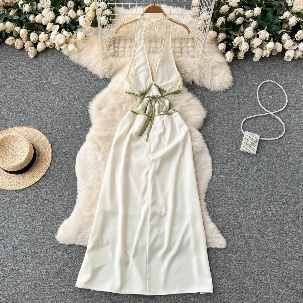 セレブの気質、女性らしさ、セクシーなホルターネック、漏れやすいショルダードレス、超妖精の女神、ウエスト、Aラインロングスカート、ホリデースタイル lyxaj22995143487