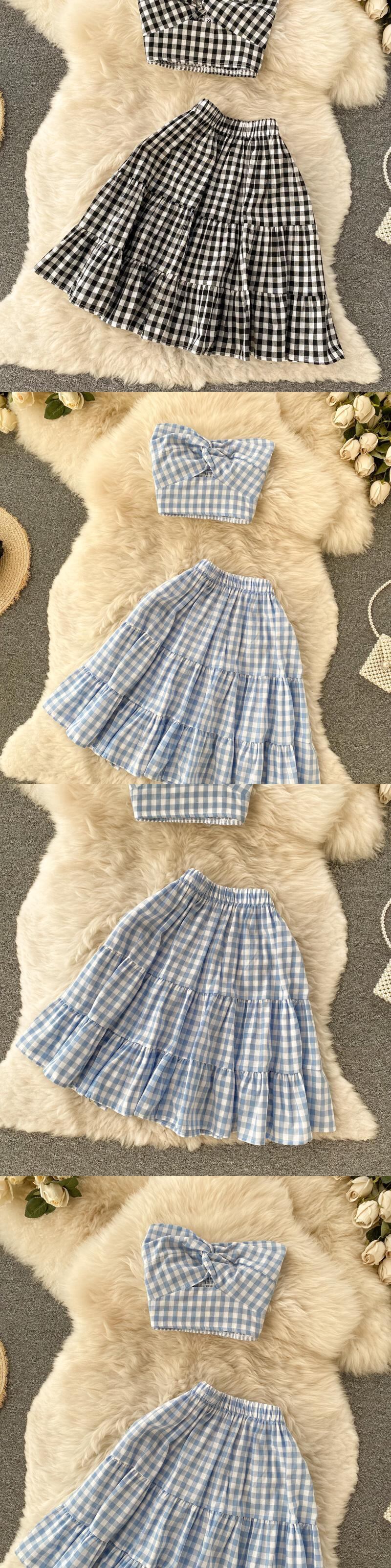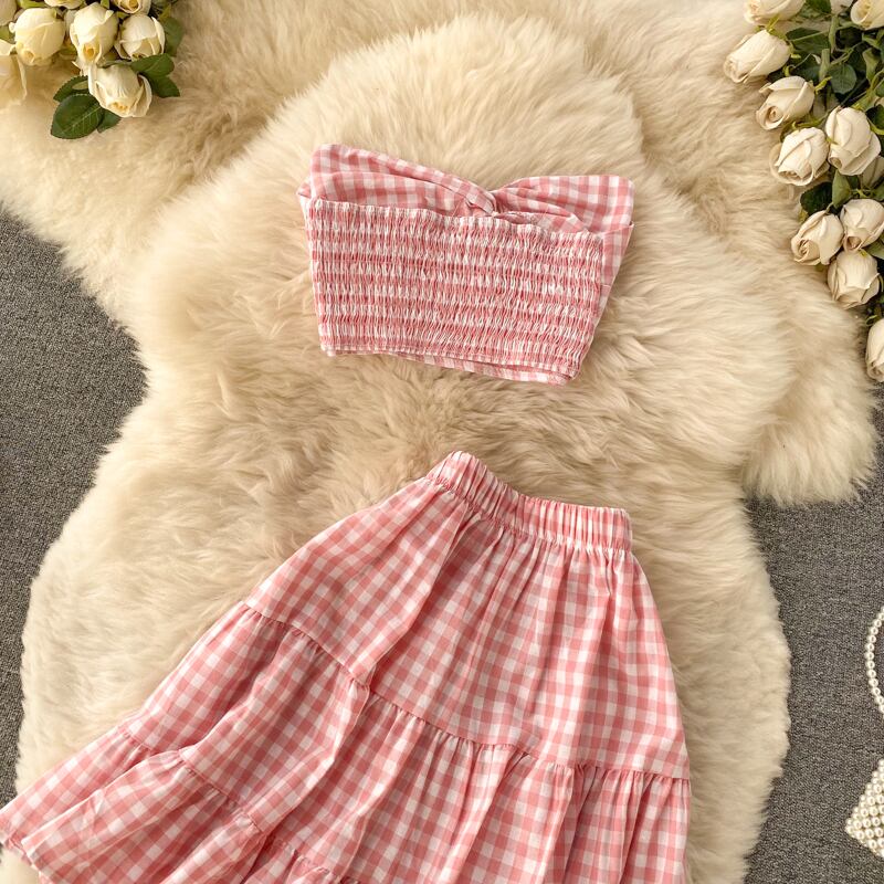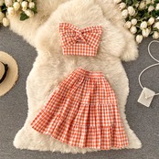 ヨーロッパとアメリカのベイビーがセクシーな中空のタイトフィットへそチューブトップの女性のプリーツスカートショートスカートツーピーススーツをクロス ヨーロピアン lyxaj41057207770