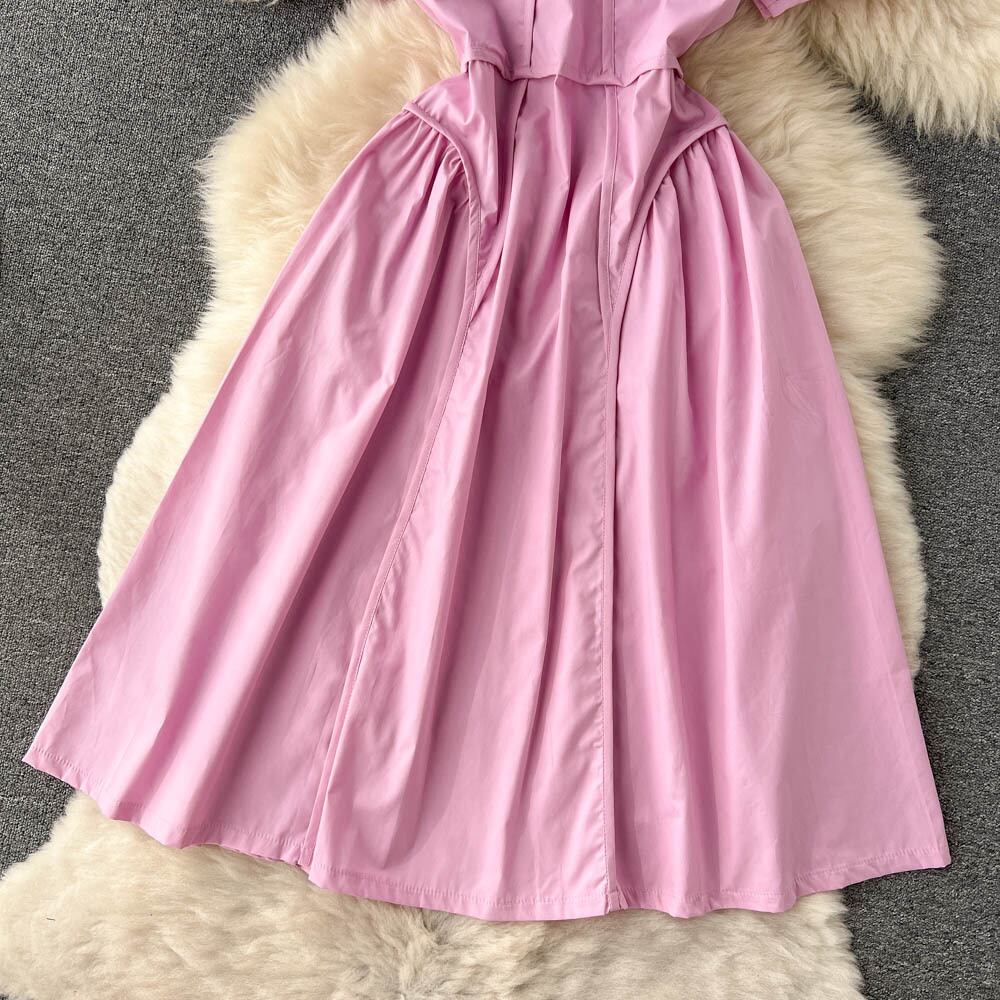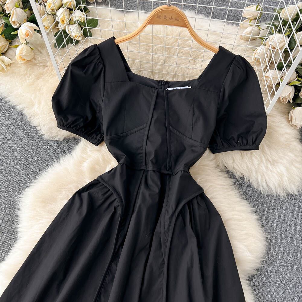 シャンチースーパーシャンチー部門スクエアネックパフスリーブドレス女性の夏の気質スリムウエスト細いベルフラワー初恋ミドル丈スカート サマー 夏物 フラワーデザイン スクウェア lyxaj40256005957
