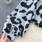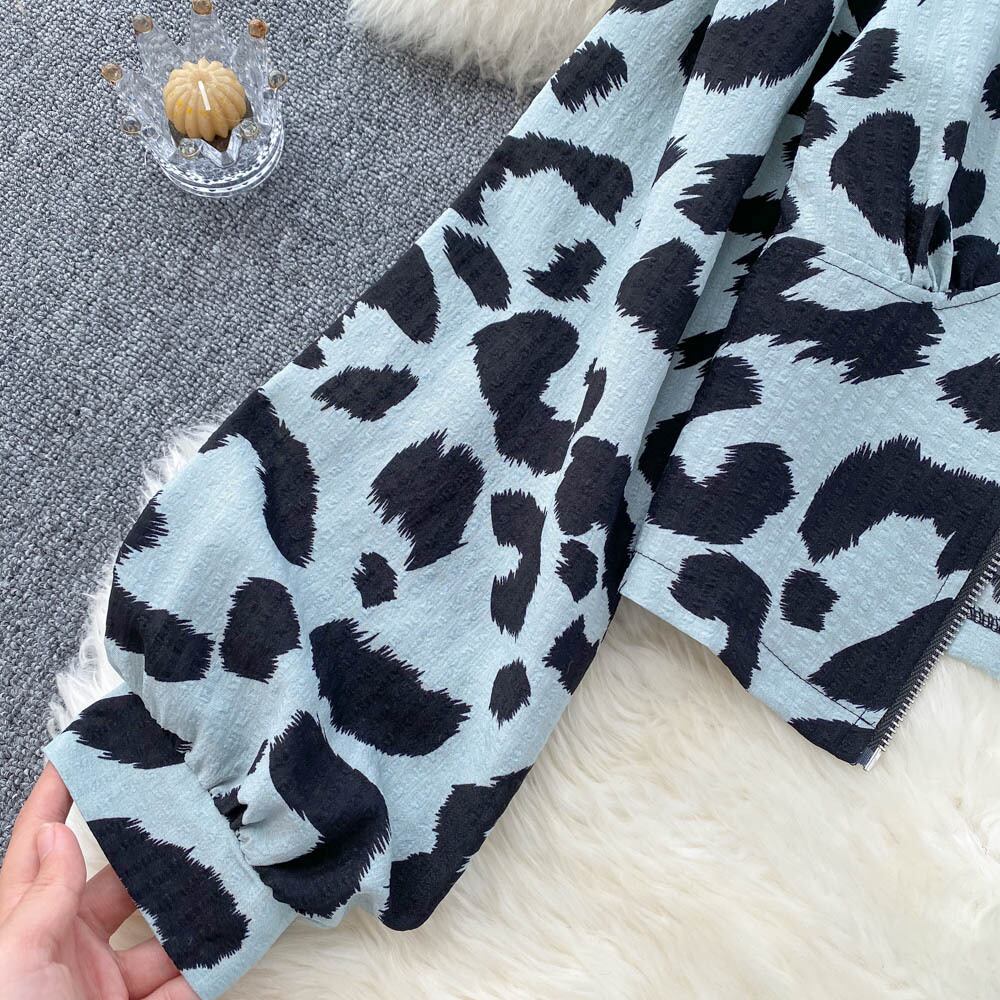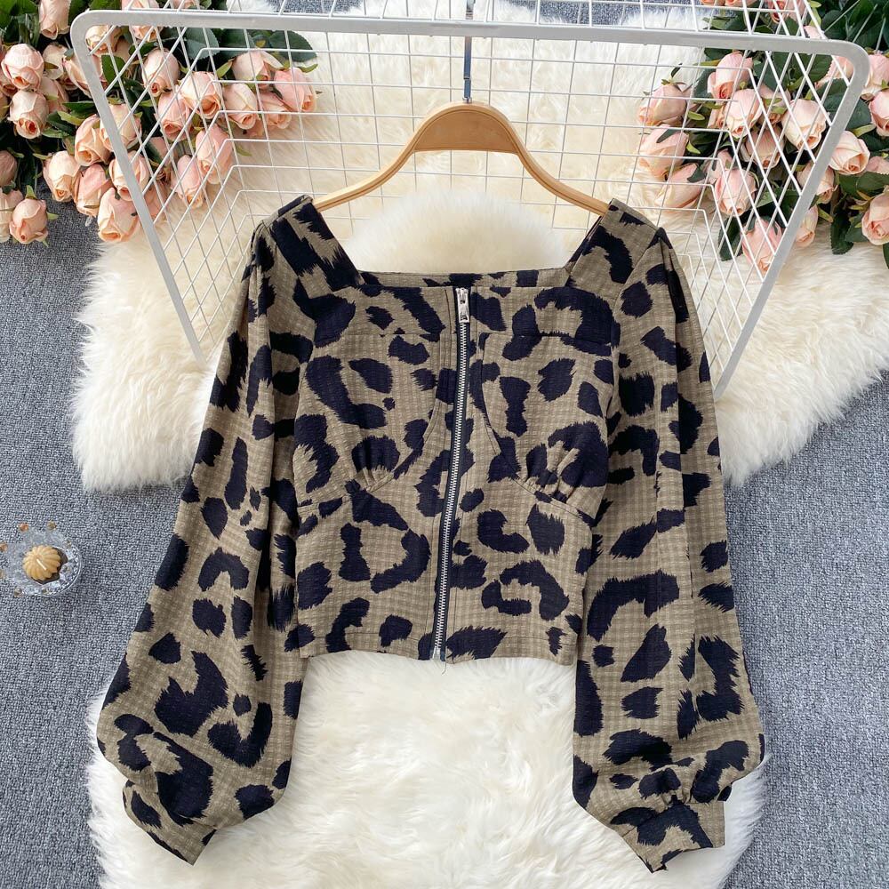 ニッチなファッション感と外国風のパフスリーブショートトップを備えたフレンチレトロ香港スタイルのスクエアカラージッパーヒョウ柄シャツ スクウェア lyxaj16348107788