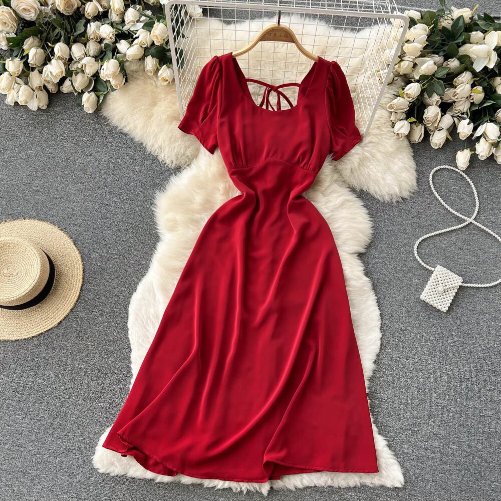 優しいスタイルのフランスの初恋ドレスミッドレングス2022夏の新しいおしとやかな気質ウエストを減らす妖精のスカート サマー 夏物 lyxaj22939153975