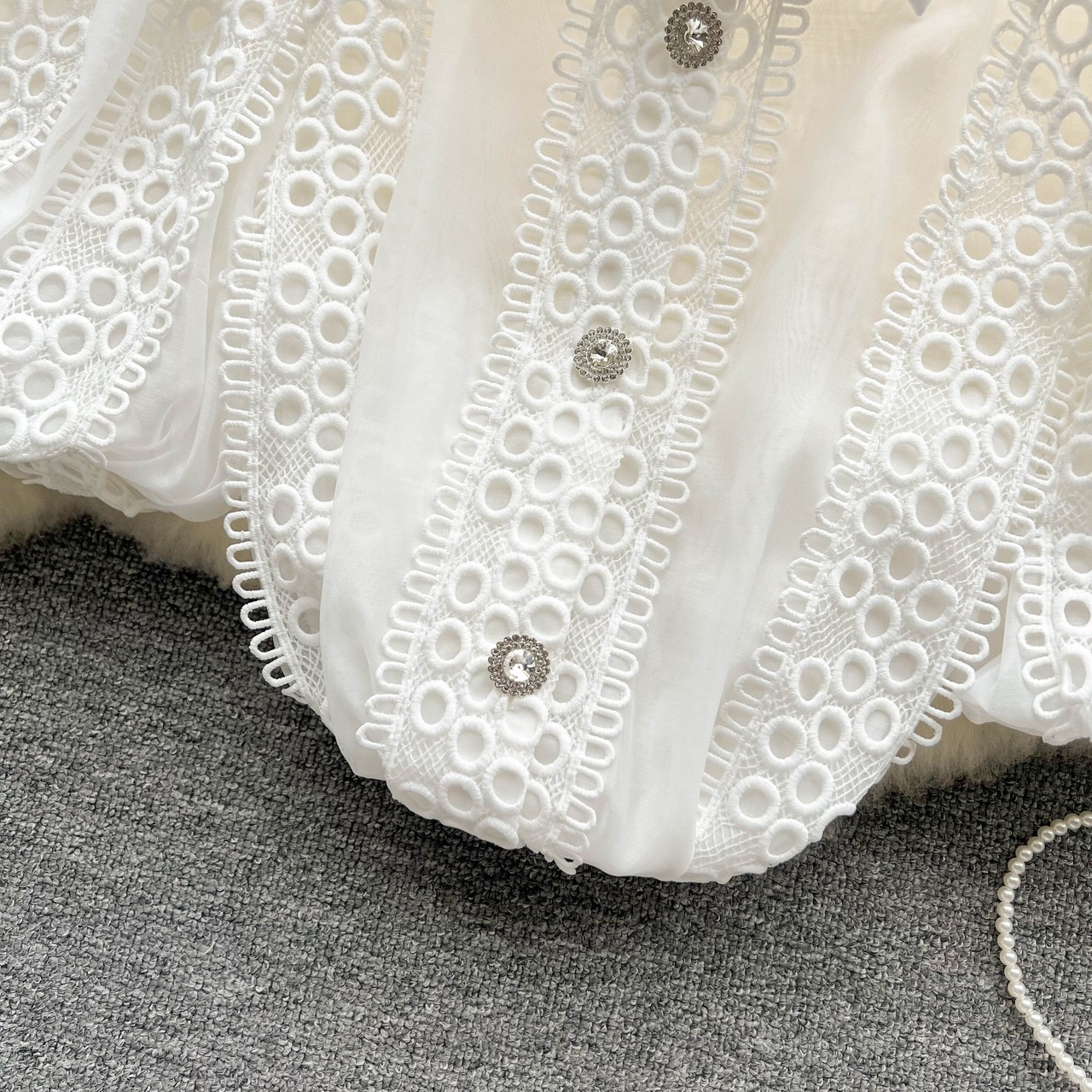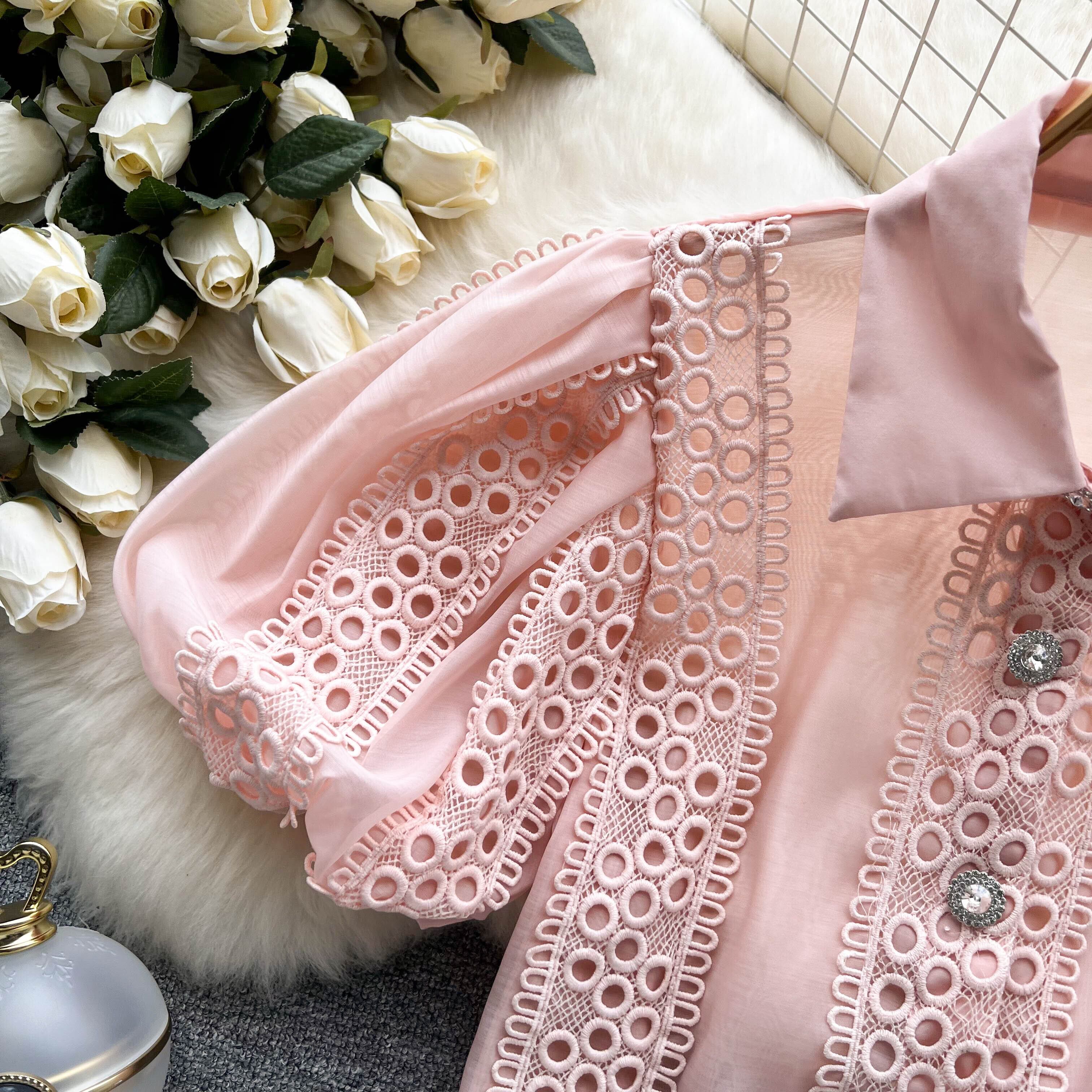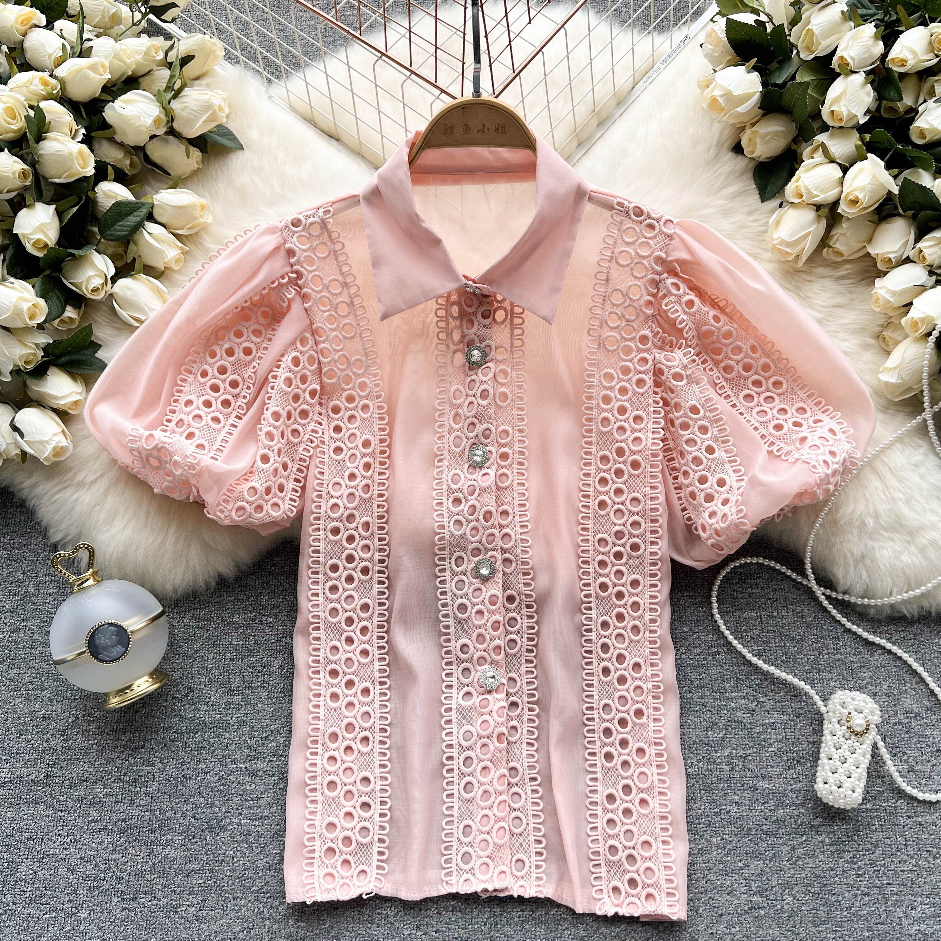 韓国版夏新作ホローフックフラワーランタン半袖パレス風シャツレディース薄片オールマッチ気質ウエスタン風シャツ レース サマー 夏物 フラワーデザイン lyxaj78590480546