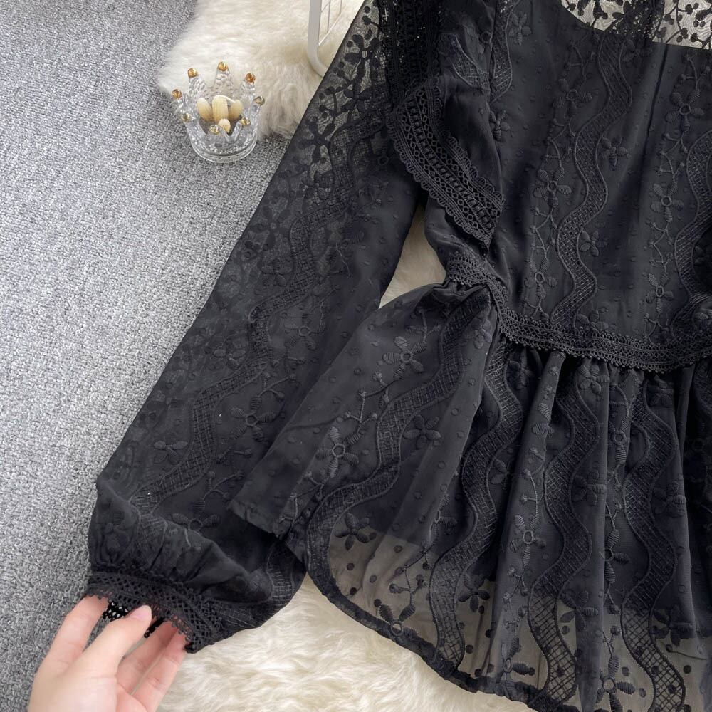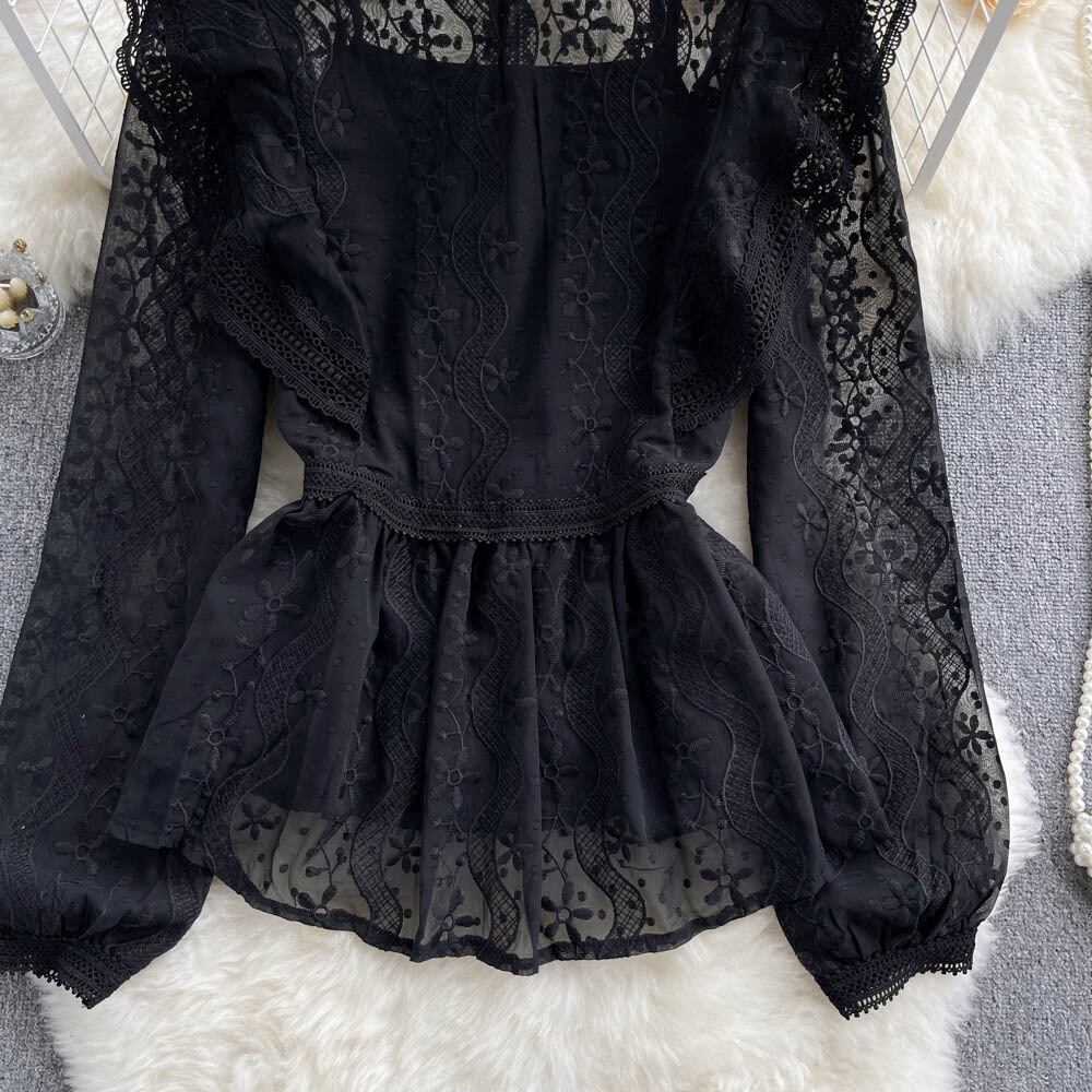 セレブライトおなじみスタイルスーツ洋風フックフラワー中空蓮の葉刺繡レースシャツサスペンダーショートトップツーピースセット 刺繍 フラワーデザイン lyxaj77671688433