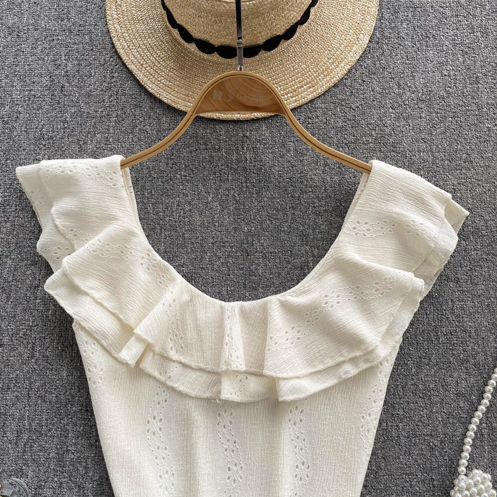 2022年夏の新しいフリルプリーツラウンドネックフレッシュ気質オールマッチノースリーブシックTシャツレディースショートトップ サマー 夏物 Oネック lyxaj48774565941