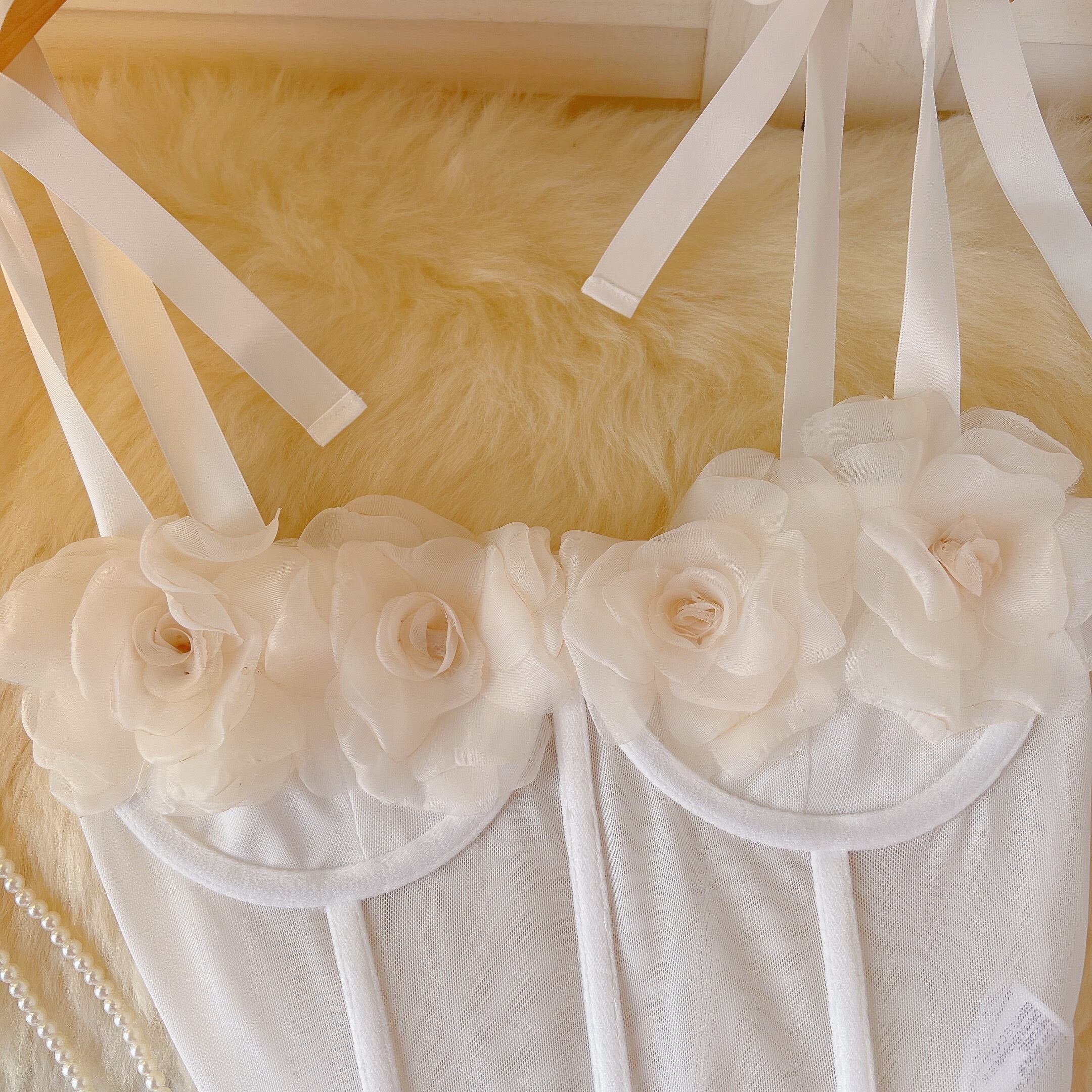 スリムなショートトップトレンディを身に着けている甘い三次元フラワーキャミソール女性ホットガールの2022年夏の新しい韓国語バージョン 大人ガーリー スウィート キュート カジュアル サマー 夏物 フラワーデザイン lyxaj9567672516
