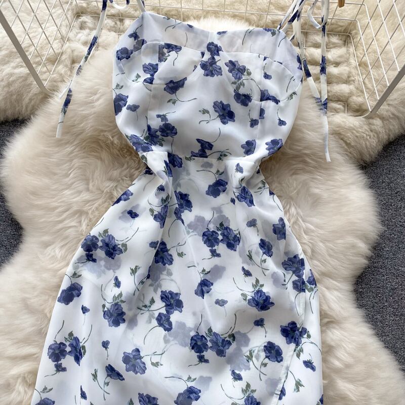 フランスのロマンチックな感じのスリムフィットとスリムなストラップドレスセクシーなサイドスリットプリーツウエストドレスホリデードレス lyxaj87464418959