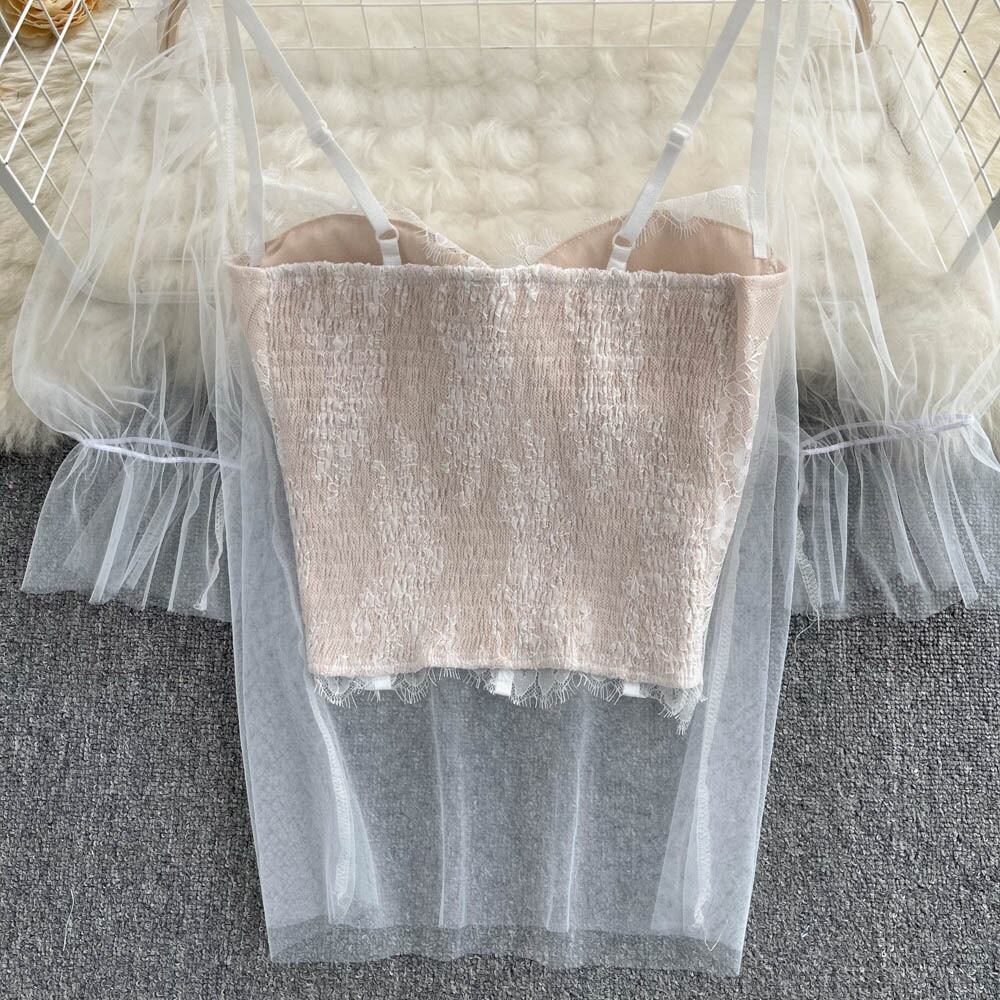 2022年夏の純粋な欲望ウィンドレースベストサスペンダー女性の春と夏の着用純粋な欲望の美しさバック通気性の短い外国スタイルのトップ ショート スプリング 春物 サマー 夏物 ピュア lyxaj46211418640