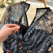 Spring and summer new heavy industry embroidery V-neck waist embroidered mesh design sense French European and American ins style dress レッド 刺繍 スプリング 春物 サマー 夏物 メッシュ Vネック ヨーロピアン lyxaj69240272816