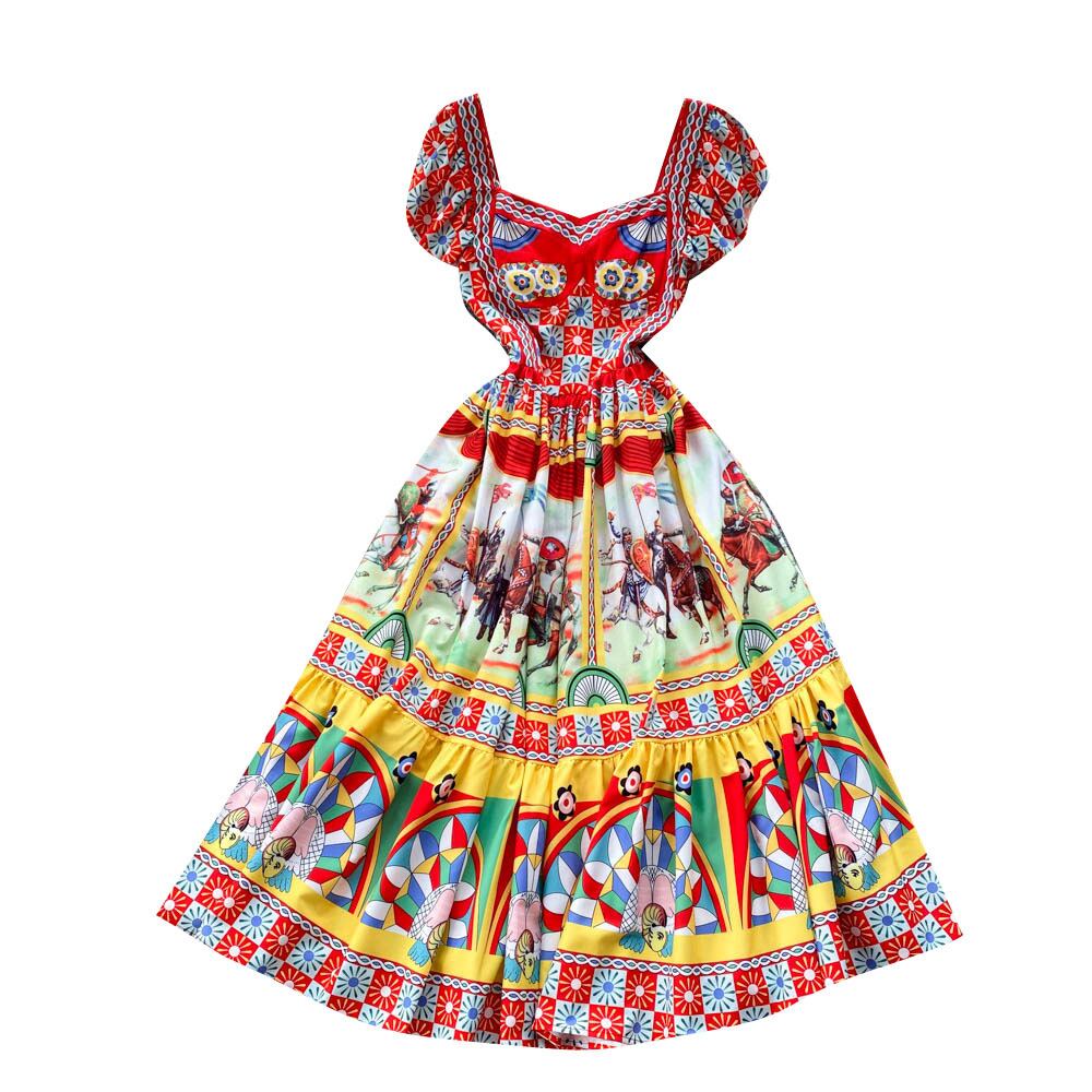 European and American temperament street shooting holiday style print mid-length dress retro palace style temperament waist large swing skirt female レトロ レース ストリート スカート ヨーロピアン lyxaj83938846995