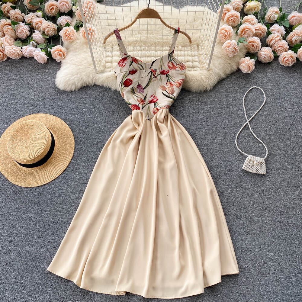 French dress Hepburn style temperament is thin bottoming floral suspender skirt first love retro super fairy gentle midi skirt レトロ 花柄 スカート lyxaj21052945909
