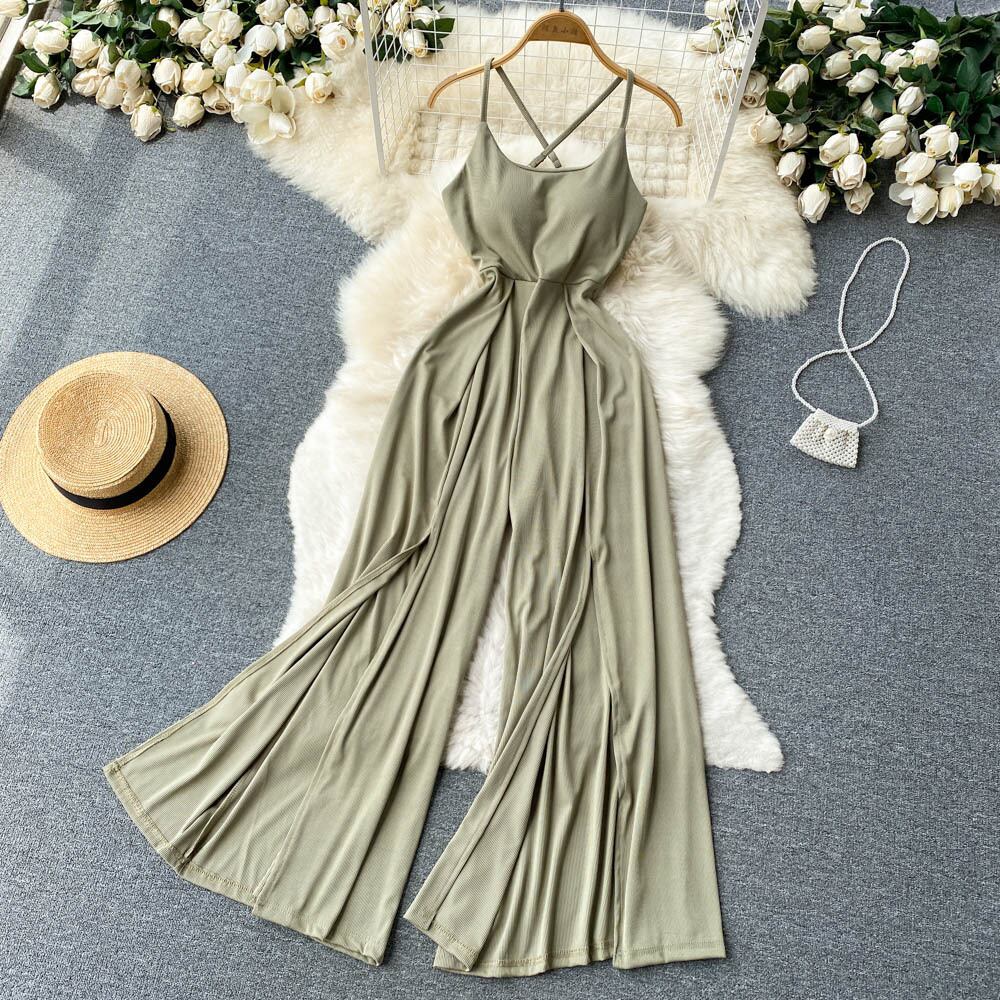 Sweet and spicy sexy beautiful back cross strap tube top jumpsuit high waist thin temperament slit wide leg trousers ハイウェスト 大人ガーリー スウィート キュート カジュアル ワイドレッグ ワイドパンツ lyxaj90666696060