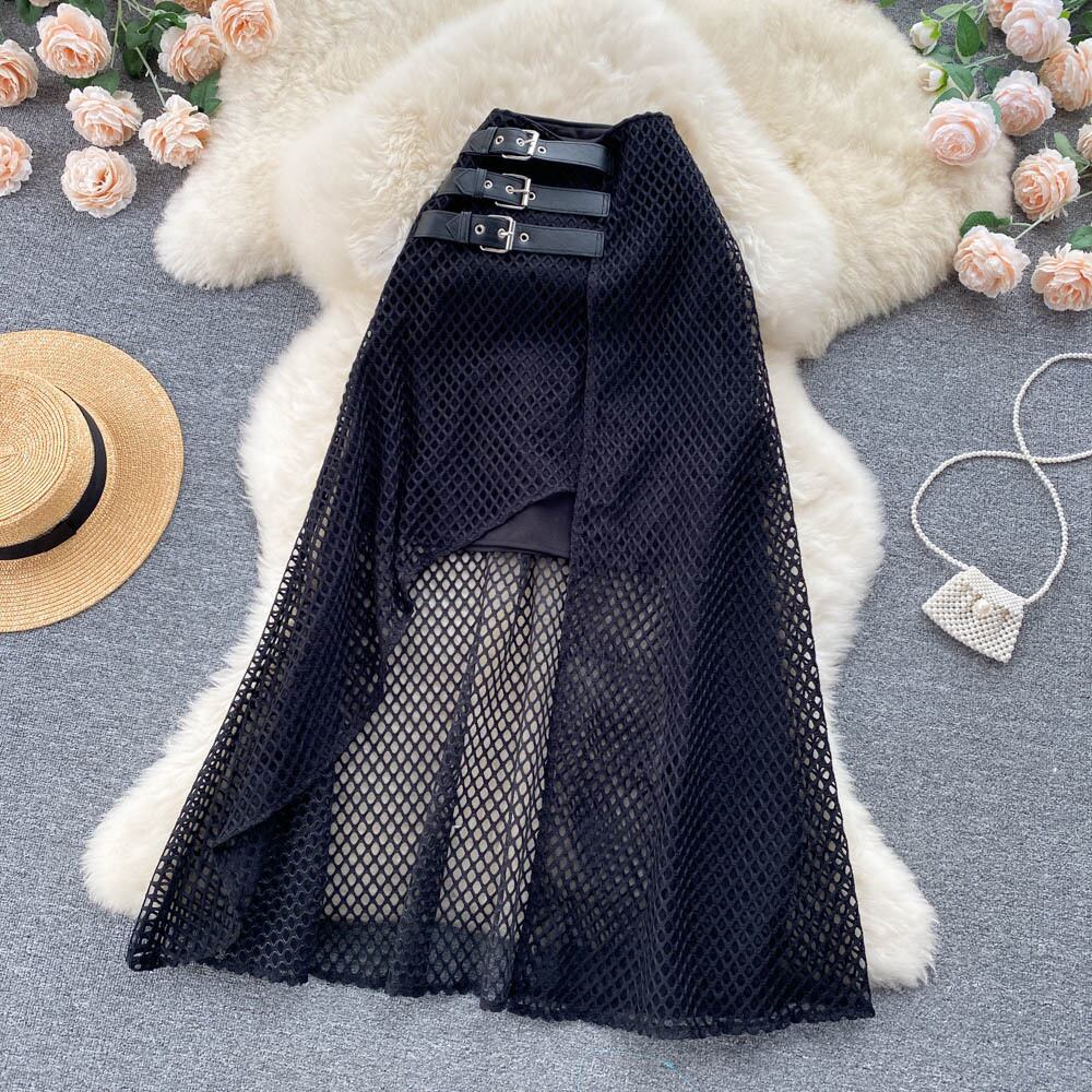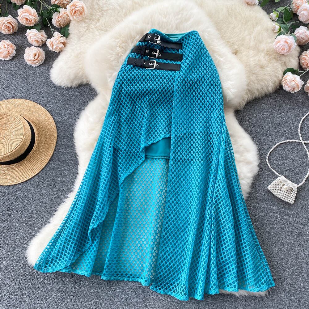 Niche design sense hem split skirt seaside vacation travel shoot elegant and smart goddess skirt high waist A-line skirt ハイウェスト エレガント スカート Aライン lyxaj63837839575