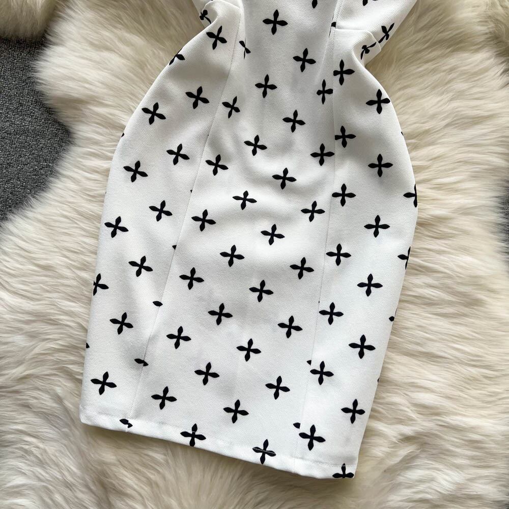 2022 summer all-match niche design sense bow square neck A-line skirt Western style waist waist mid-length dress women リボン サマー 夏物 スカート Aライン スクウェア lyxaj43079011223
