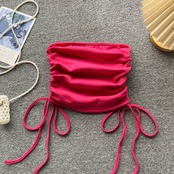 Hot fried street sexy tube top vest women's summer fashionable smocked lace-up short leaking navel bottoming top ショート レース ストリート サマー 夏物 レースアップ lyxaj78298976866