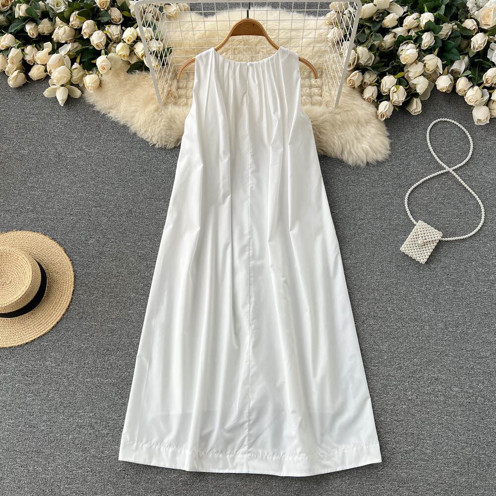Holiday style summer new beach big swing dress super fairy seaside white loose sling sleeveless doll dress ホワイト サマー 夏物 ビーチ ノースリーブ lyxaj8100658734