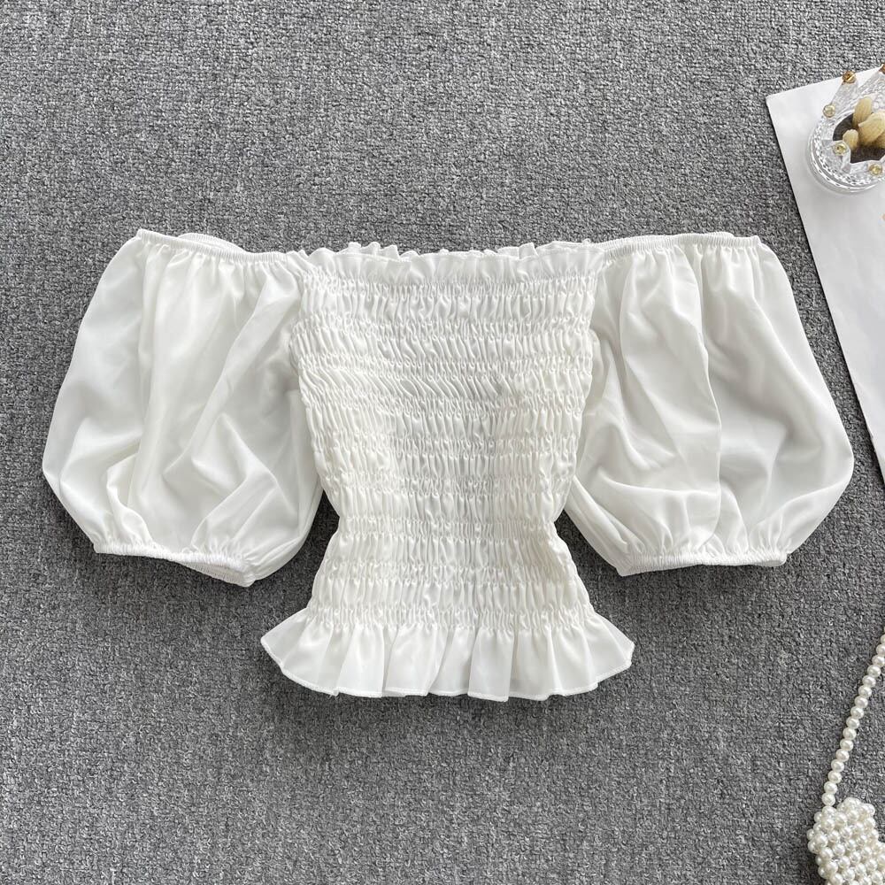 Short-sleeved square-neck top women's design sense niche short-sleeved new short shirt women's retro Hong Kong style tunic trendy ショート レトロ スクウェア lyxaj62388219094
