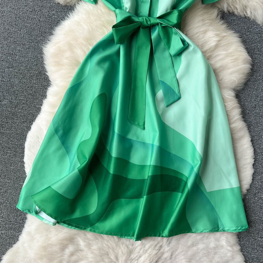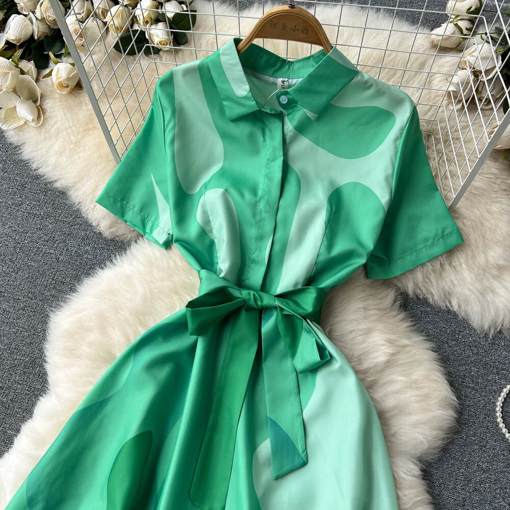 French gentle style temperament polo collar shirt dress lace waist is thin green sweet temperament A-line skirt レース 大人ガーリー スウィート キュート カジュアル スカート Aライン グリーン lyxaj95217542935