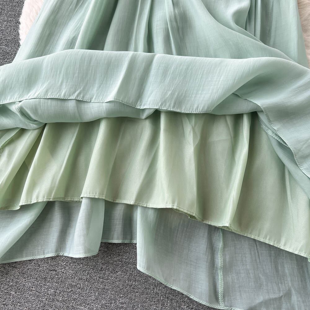 chic solid color simple literary small fresh halter suspender dress temperament loose fold over the knee long skirt ロング スカート ソリッドカラー lyxaj82136481621