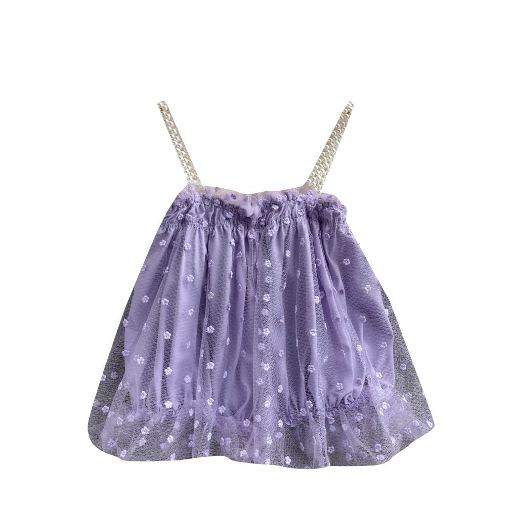 Summer new French pearl chain mesh stitching one-shoulder suspender doll shirt women's sweet backless top trendy 大人ガーリー スウィート キュート カジュアル サマー 夏物 メッシュ パール 真珠 チェーン ステッチ lyxaj89523870938
