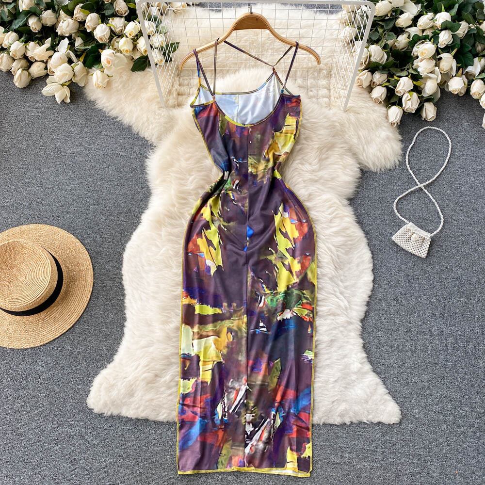 European and American style ins new backless beach skirt seaside holiday style suspender dress loose and thin printed long skirt ロング プリント ビーチ スカート ヨーロピアン lyxaj82151899941