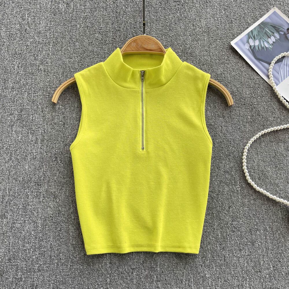 2022年ホットガールホルターネックラウンドネックベストサスペンダー女性ネットセレブスリムフィットオールマッチショートジッパーTシャツトップトレンディ Oネック lyxaj54724057286