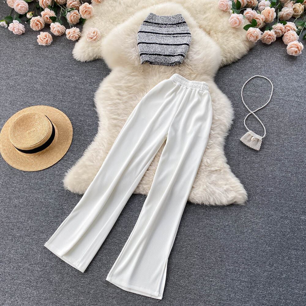 春夏新作ファッションロイヤルシスタースタイルストライプチューブトップショートトップスプリットワイドレッグパンツツーピーススーツメス スプリング 春物 サマー 夏物 lyxaj10533484008