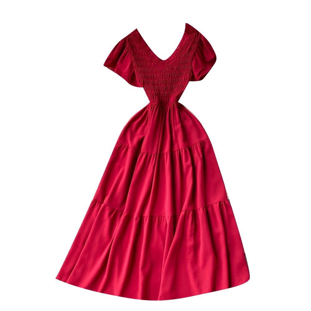 フレンチティーブレイクVネックスリム気質ワンピース2022年夏新作ハイウエストスリムAラインスカート サマー 夏物 lyxaj5868496176