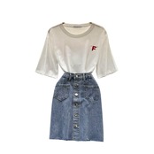 Summer 2022 new women's short-sleeved T-shirt suit Hong Kong style fashion Western style age-reducing denim skirt two-piece set サマー 夏物 スカート Tシャツ lyxaj30022460989