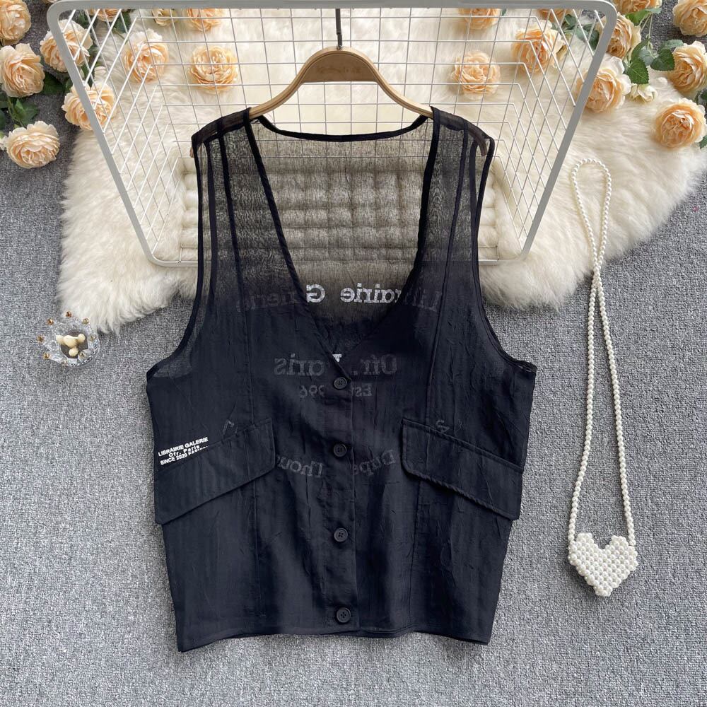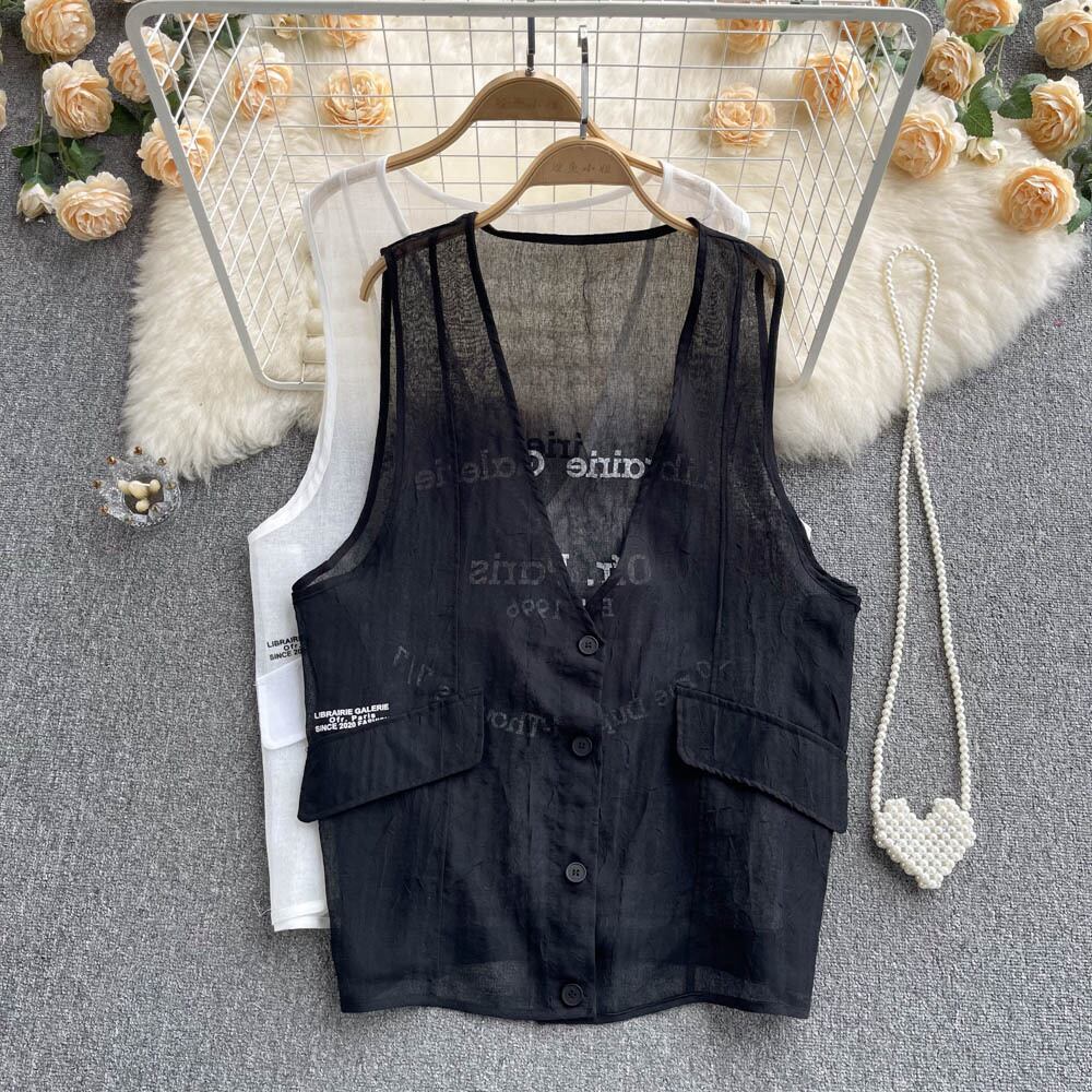 2022 summer new thin letter printing V-neck single-breasted casual all-match women's vest top カジュアル サマー 夏物 Vネック lyxaj27295351064