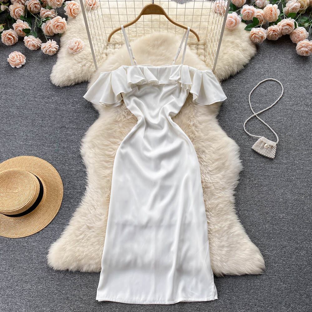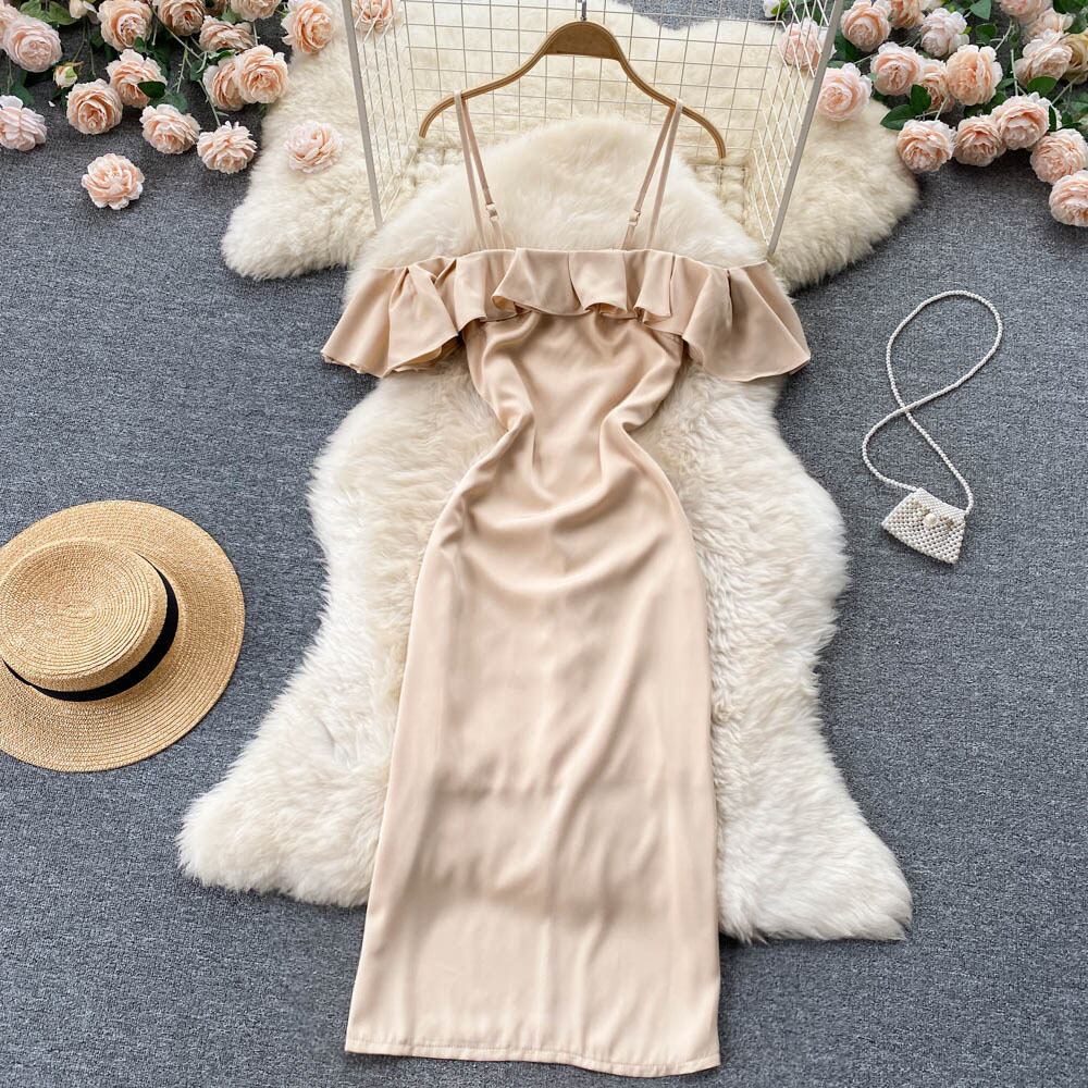 2022 summer new version of the sexy word-neck ruffled French retro slim bag hip waist dress レトロ サマー 夏物 スリム lyxaj90189017424
