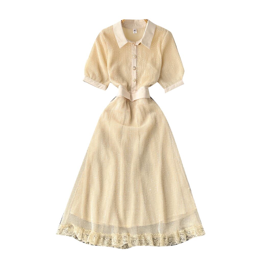 French dress women's summer dress waist slim temperament college style sweet small fresh retro literary lace skirt レトロ レース 大人ガーリー スウィート キュート カジュアル サマー 夏物 スカート スリム lyxaj24103959209