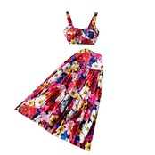 セレブ休暇ヨーロッパとアメリカンスタイルのインプリントスーツ女性のショートサスペンダートップ大スイングプリーツスカートツーピースセット ヨーロピアン lyxaj6475315832