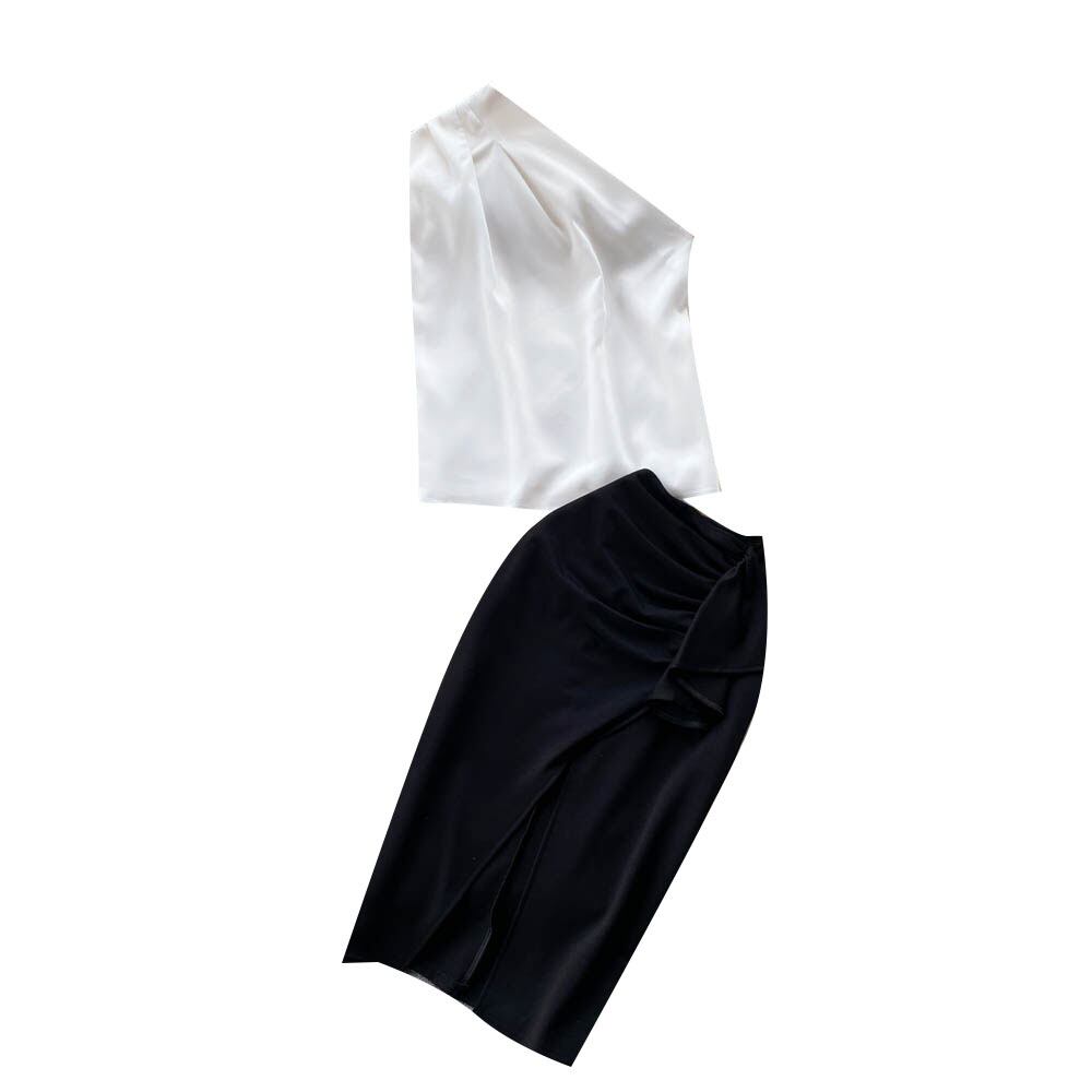小さなフレグランススーツセクシーな女神ワンショルダーショートサテンベストトップスリットプリーツスカートツーピースタイド lyxaj82124615159