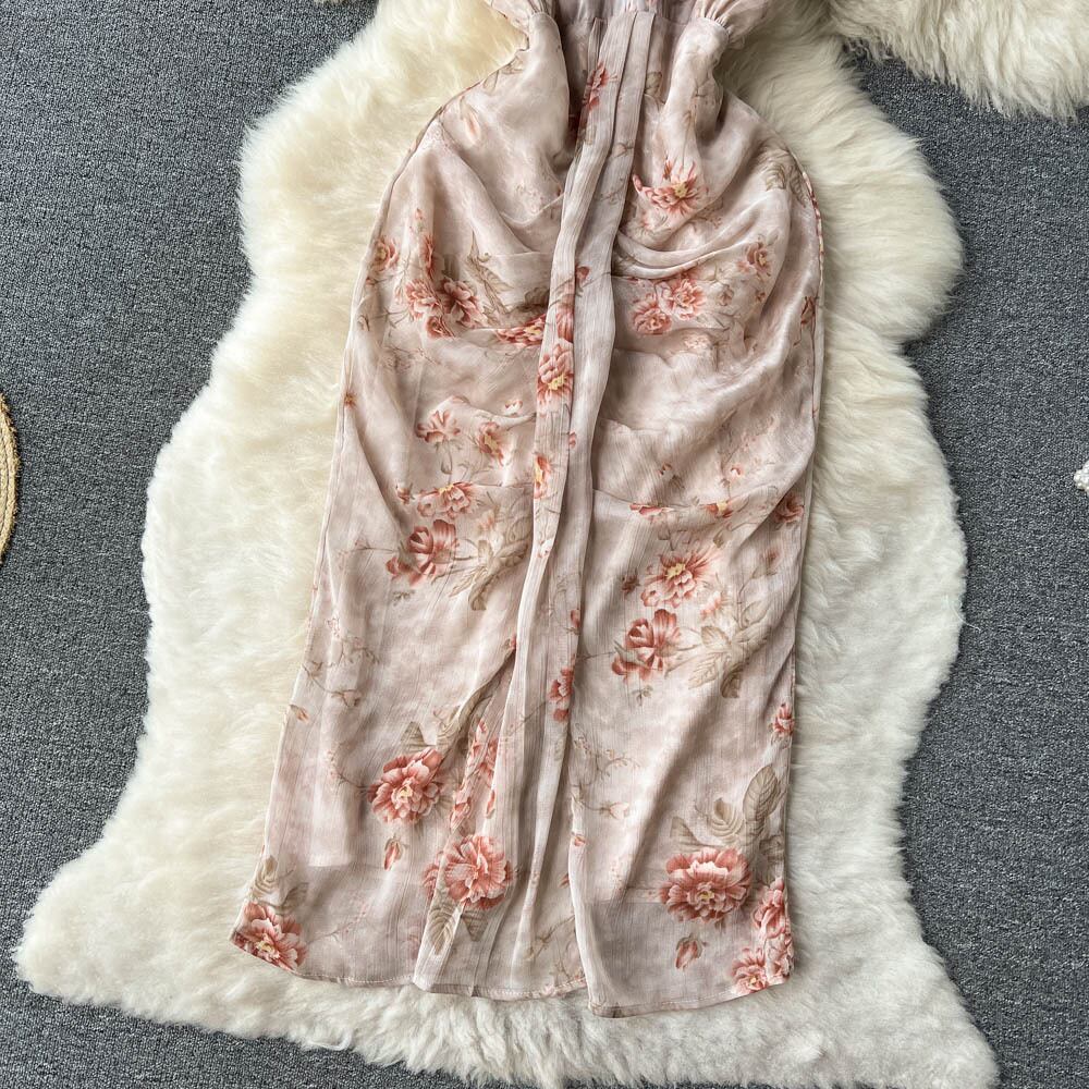 French high-end light luxury ladies dress temperament floral dress women's 2022 summer waist slimming skirt サマー 夏物 花柄 スカート lyxaj55539191140