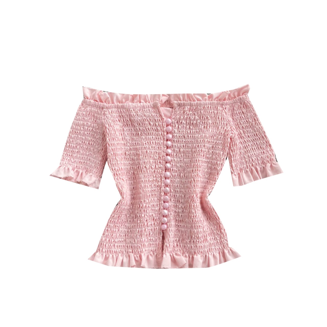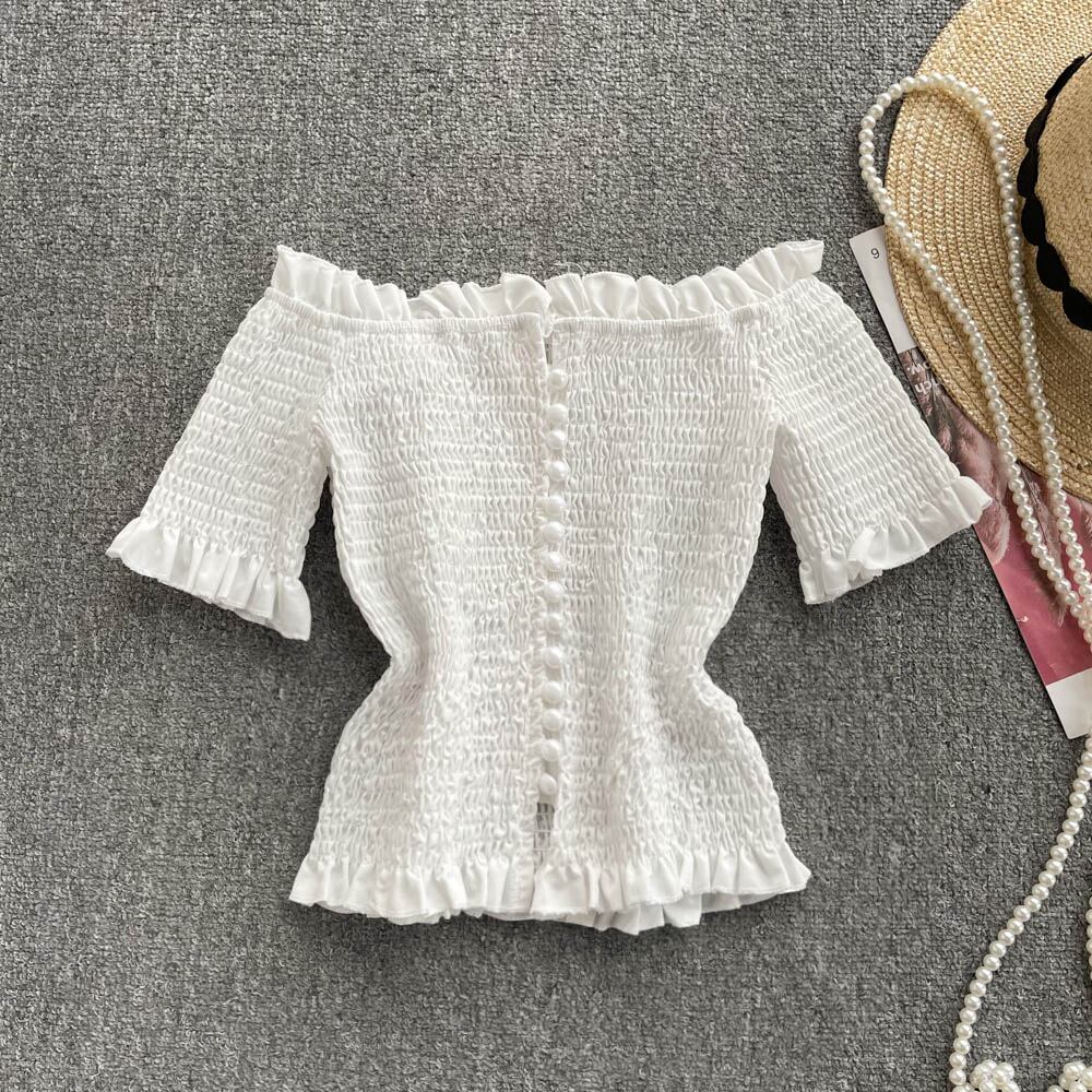 ハンファン菌サイドニッチオフショルダーワンワードカラースリムフィットショートトップ女子夏学生半袖シャツトレンディ サマー 夏物 lyxaj69285118707