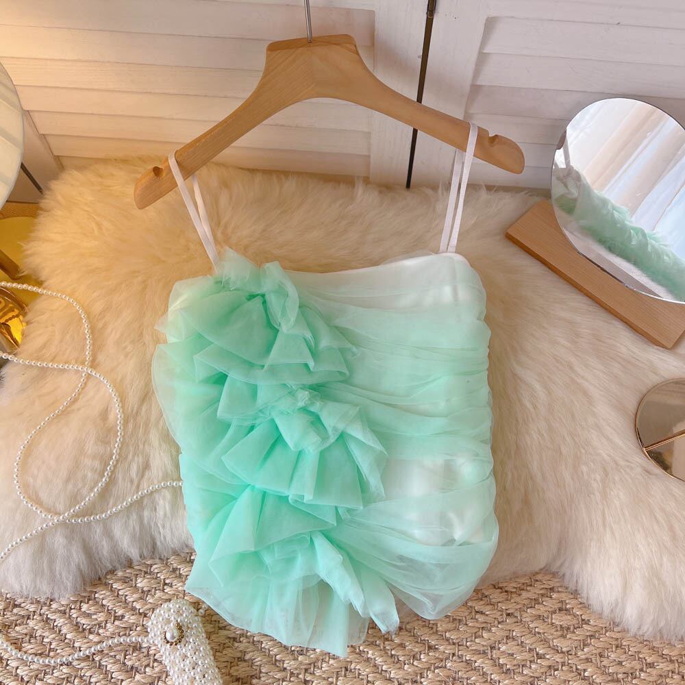 Retro super fairy mesh camisole vest women's summer new sexy off-the-shoulder short all-match temperament top ショート レトロ サマー 夏物 メッシュ lyxaj76898725214