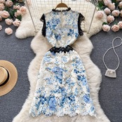 French gentle style, elegant and feminine, hollow lace dress, female waist, thin, super fairy temperament, A-line skirt レース エレガント スカート Aライン lyxaj69048954171