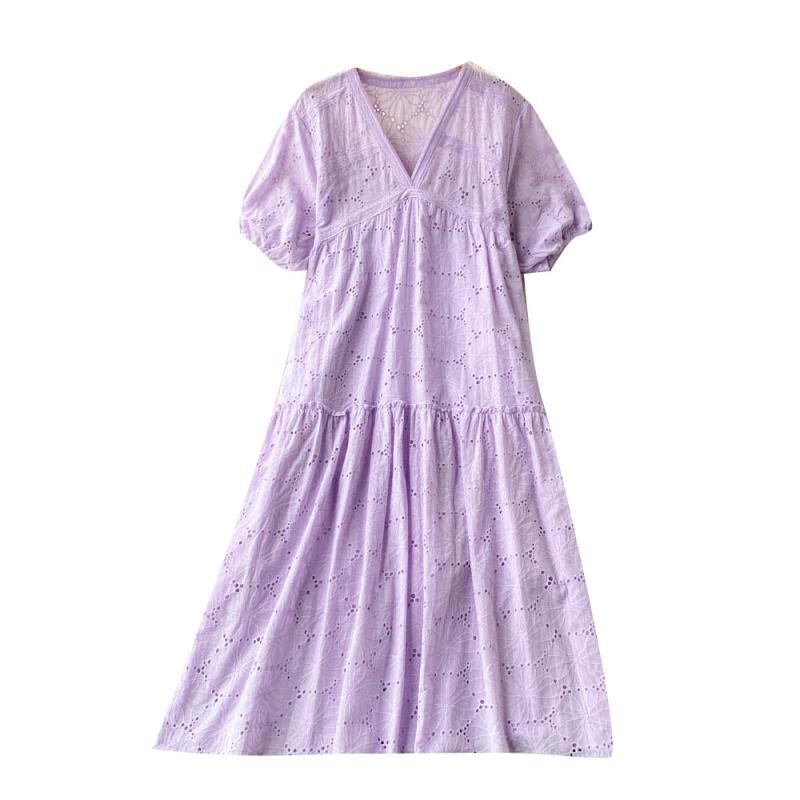 Bohemian Heavy Industry Embroidered Hollow Dress Women's Spring Style V-neck Loose Mid-Length Holiday Skirt レッド 刺繍 スプリング 春物 スカート Vネック lyxaj79446761205