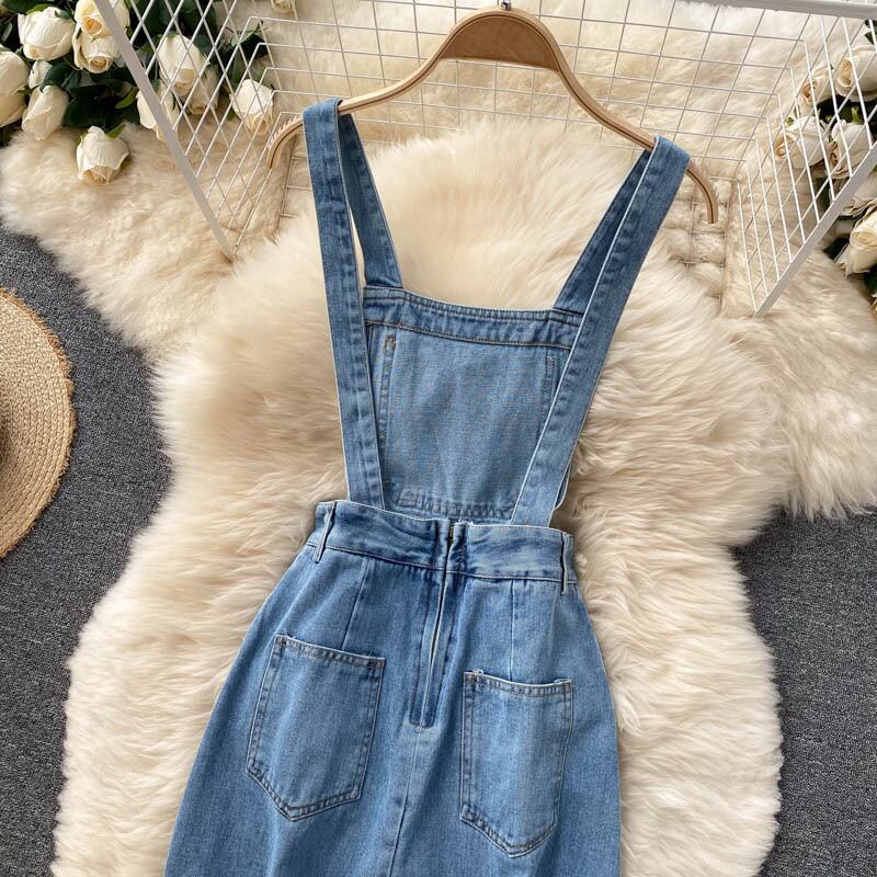 version of women's summer new retro all-match denim dress women's heart split long section age-reducing strap skirt ロング レトロ サマー 夏物 スカート lyxaj7963517181