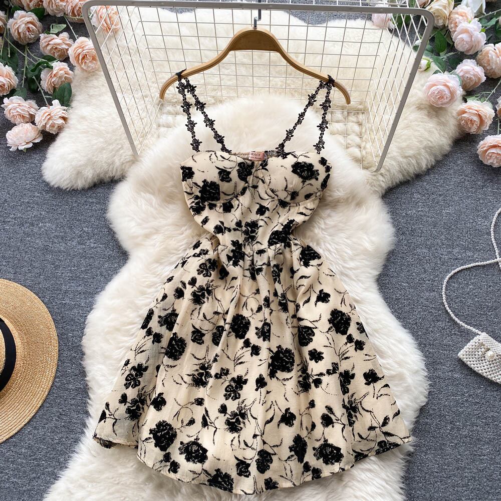 Sweet lace suspender dress women's summer 2022 new scheming hollow backless slim short holiday skirt ショート レース 大人ガーリー スウィート キュート カジュアル サマー 夏物 スカート スリム lyxaj28726562028