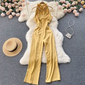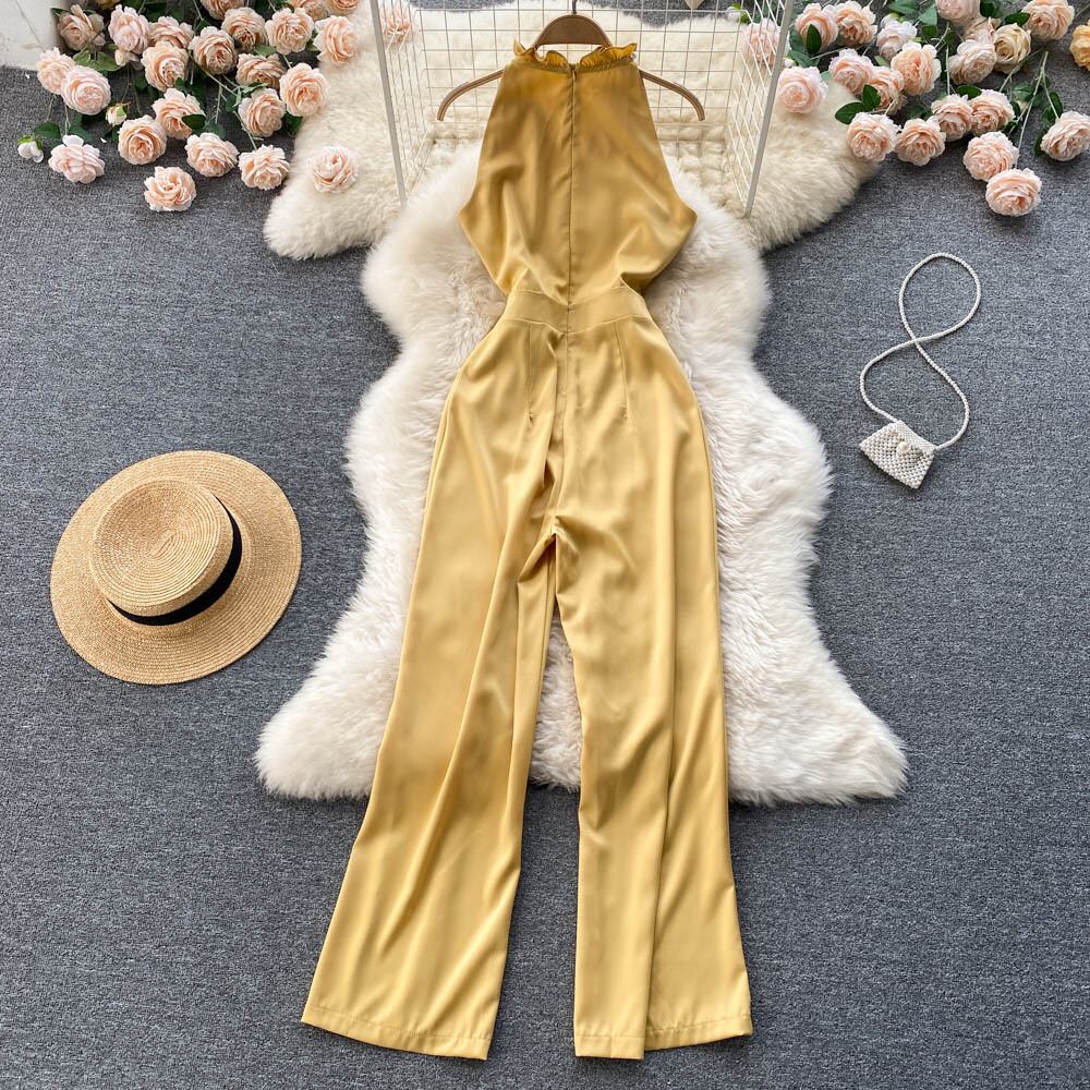 気質の女神ファンホルタージャンプスーツウエストスリムサマーハイウエストノースリーブジャンプスーツカジュアルストレートワイドレッグパンツ ハイウェスト 夏物 ワイドパンツ lyxaj23004704306