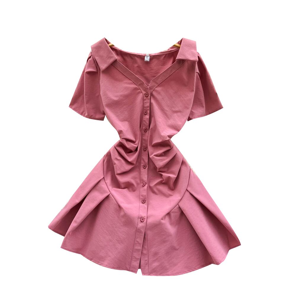 2022 summer new sweet and spicy pleated dress feminine temperament waist and thin V-neck short skirt ショート 大人ガーリー スウィート キュート カジュアル プリーツ サマー 夏物 スカート Vネック lyxaj17770318220