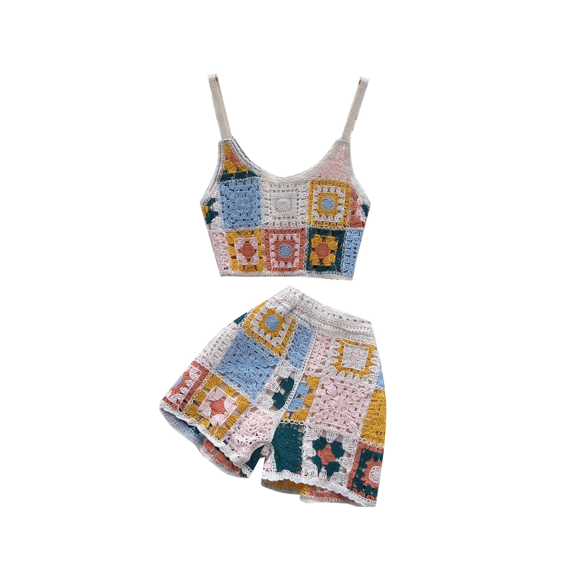 エスニックスタイルの手編みのショートセクションスモールスリングニットベスト女性の中空ブラウスアウターウェアショーツツーピーススーツタイド ブルマー lyxaj27119357553