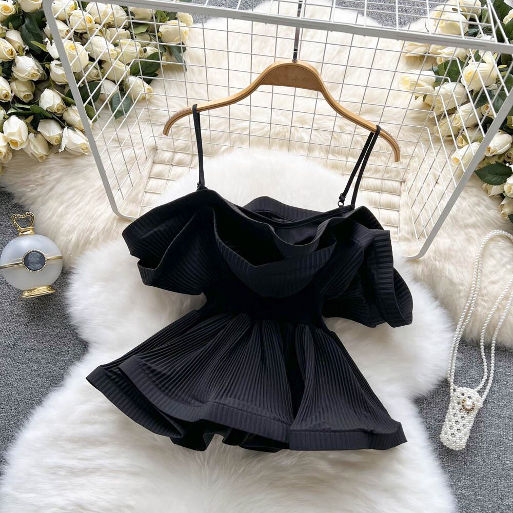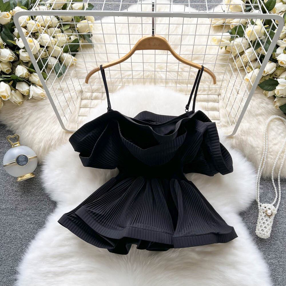 シックなデザインのフリルキャミソールレディースサマーアウター2022新しいウエスト丈ショートウエスタンスタイルトップトレンディ 夏物 lyxaj1587358424