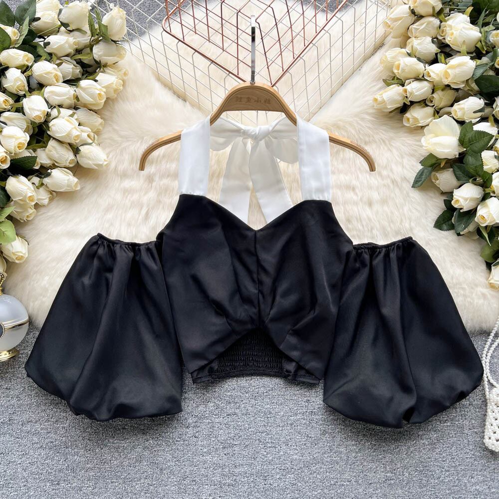 甘くてスパイシーなスタイルのセクシーなオフショルダーホルターシャツ女性のデザインセンスニッチハイウエストへそ甘い気質ウエスタンスタイルの小さなシャツの潮 大人ガーリー スウィート キュート カジュアル lyxaj14495982885