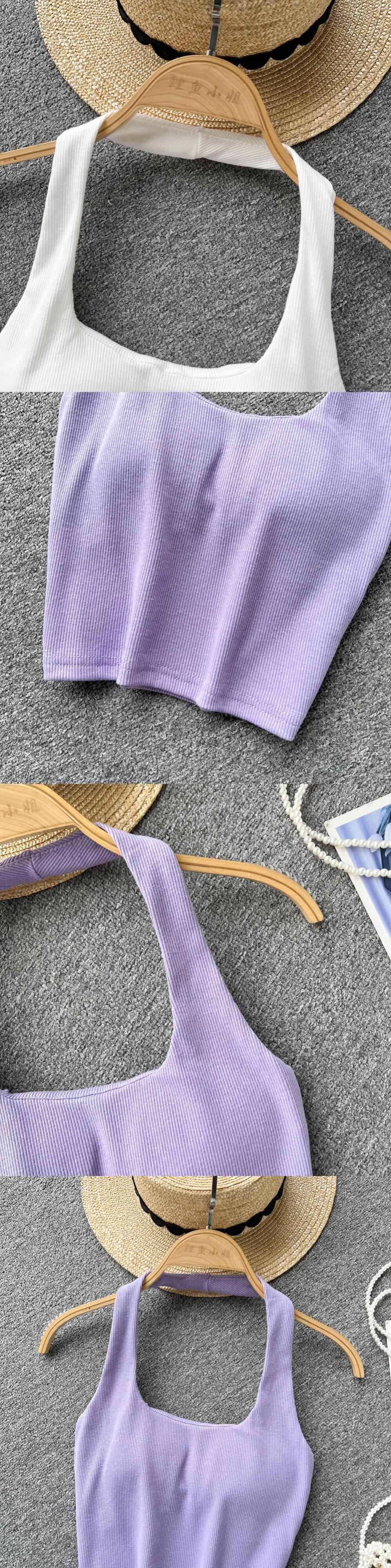 キャンディーカラーのベイビーは、2022年夏のニッチなアウトサイドウェアにホルターネックのデザインを着ています。新しいスリムフィットのショートオールマッチトップス レッド サマー 夏物 lyxaj64968545596