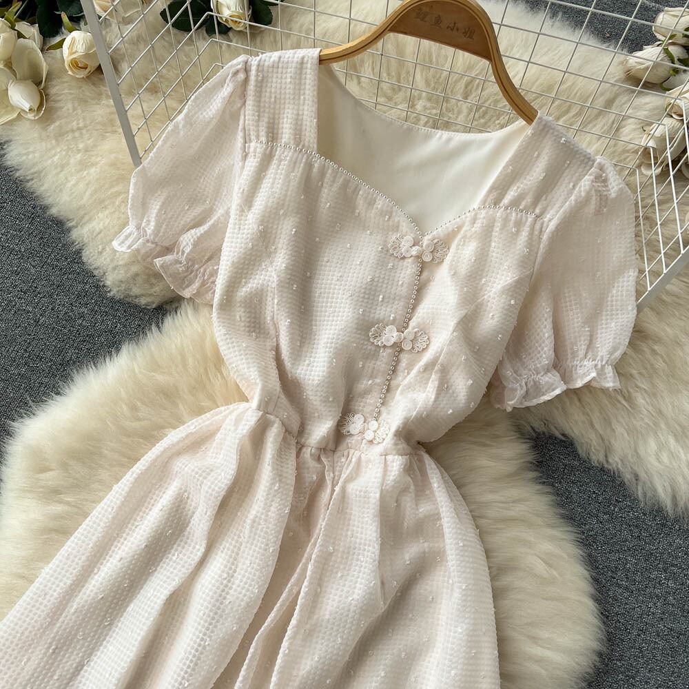 フランスの優しいスタイルのスーパーフェアリーベルフラワー初恋スカート2022年夏の新しいウエストと年齢を減らすパフスリーブドレスの女性 サマー 夏物 フラワーデザイン lyxaj94566330169