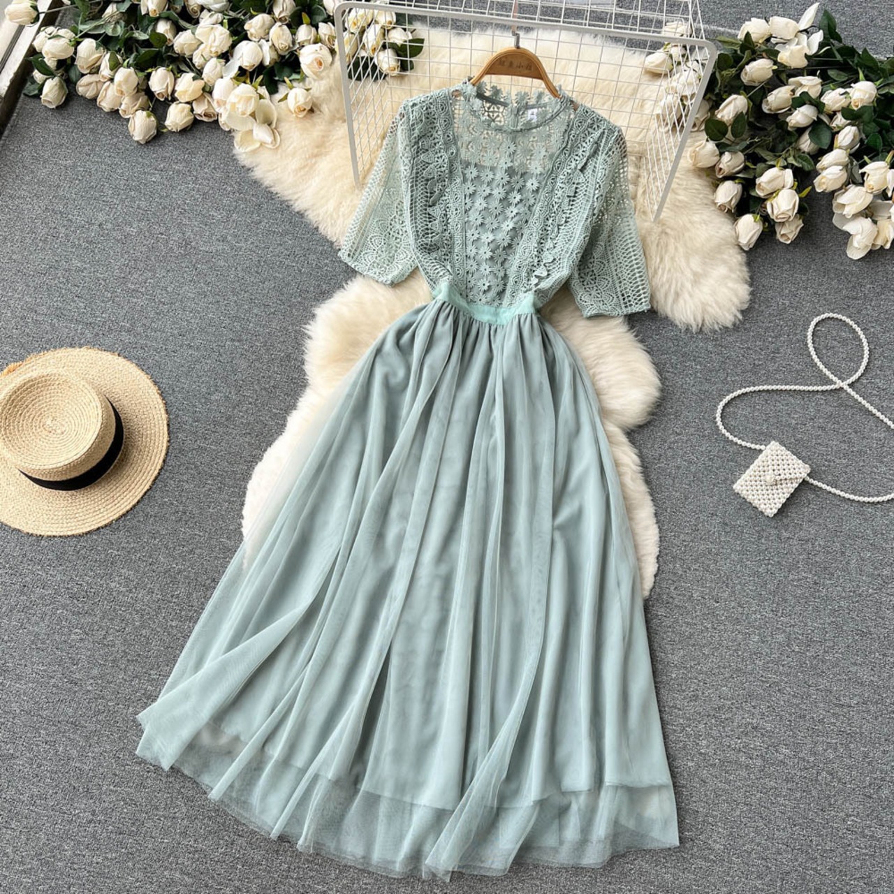 プリンセスウィンドティーブレイクフレンチハイエンドセンスメッシュステッチレースワンピースウエストスリムフェアリー気質Aラインスカート lyxaj14082455282