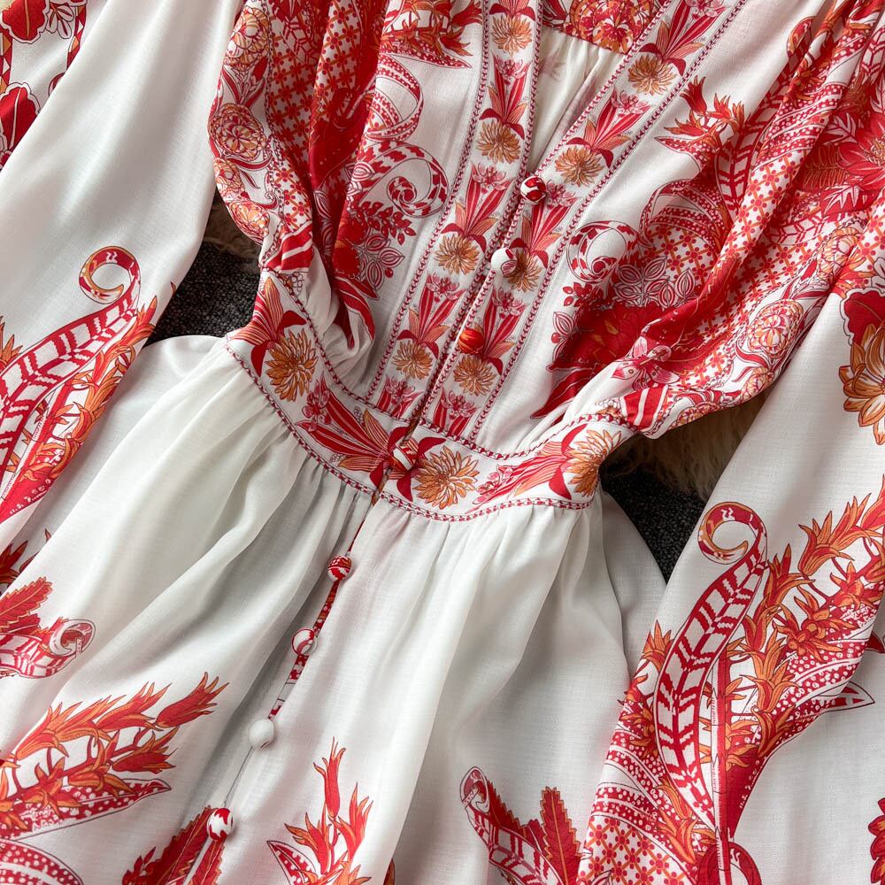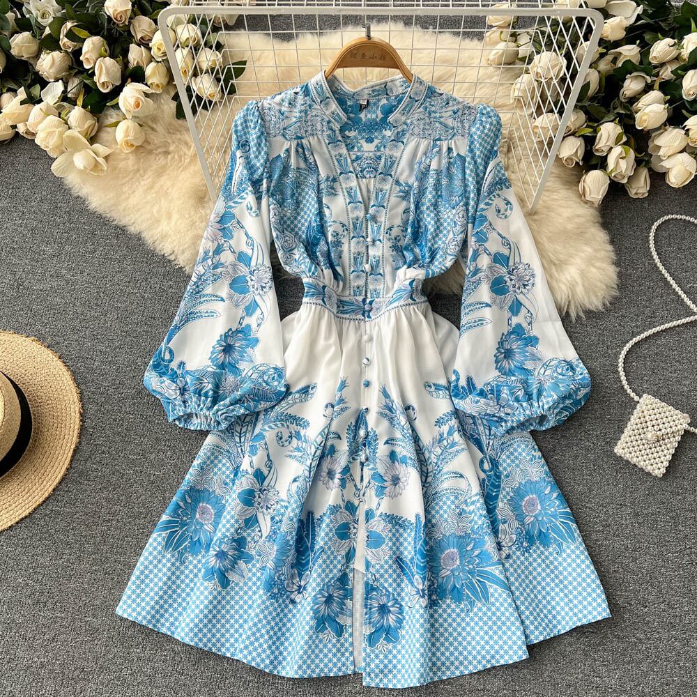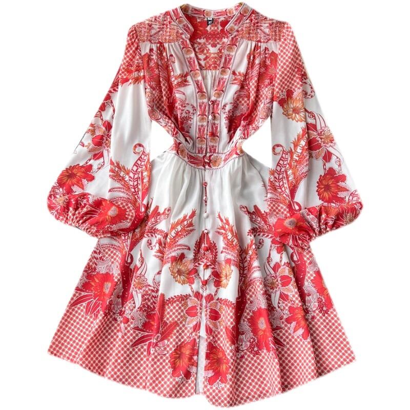 パレススタイルのレトロなプリントのハイエンドドレスの女性の春と秋の新しいスタイルのウエストと薄くてルーズな大きなスイングシャツのスカート レース スプリング 春物 オータム 秋物 lyxaj79640969134